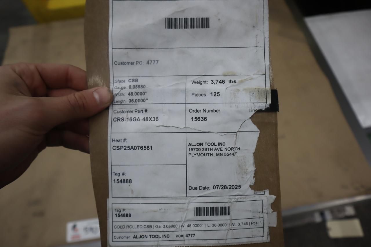 View Auction Item:https://www.machinesused.com/lots/49096 Lot 590: Steel Sheet Material, (2) Stacks of CRS .0598" x 48" x 36", (250 pcs Total) Manufacturer: Generic Model: Generic Main Unit Approx Weight: 0.00 lbs Main Unit Dimensions (in inches): Length: 0.00" Width: 0.00" Height: 0.00" Seller Company: Aljon Tool, Inc. Seller Contact: Machinesused.com Aljon Phone: (763) 745-1166 Item Location: Aljon Tool, Inc., 15700 28th. Ave. No., Plymouth, MN 55447 Location Contact: Machinesused.com Aljon Phone: (763) 745-1166 Inspection Date & Time: Thursday-Friday, February 19-20, 2026 9AM-4PM Dock Door: 12' x 14' H Door Ground Level Doors Loading Dock: Ground Level and Truck Cock Level Doors Removal Dates and Times: This item must be removed between Monday, March 2, 2026 and Friday, March 6, 2026