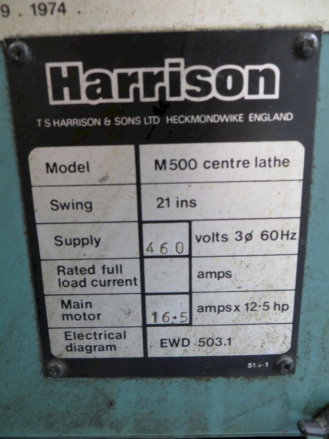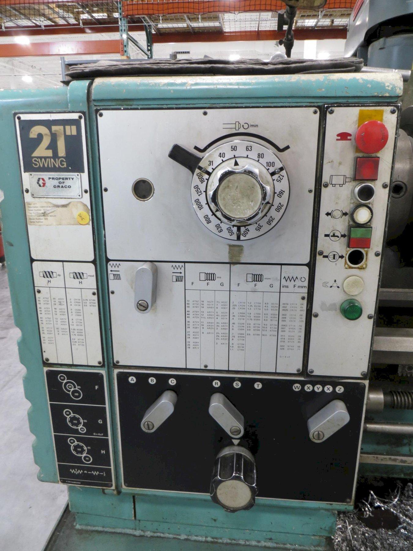 Lot 110: Harrison M500 21" x 60" Engine Lathe, 12" 3-Jaw Chuck, Tool Post, Steady Rest, Tailstock and MORE! Equipped With: 12" 3-Jaw Chuck, 3-1/8" Bore, Steady Rest, 2-Way Tool Post with Assorted Tool Holders, Tailstock with Assorted Centers, Inch/Metric Threading, Chuck Guard, Splash Guard, Work Light Electrics: 460 Volt, 3 Phase Manufacturer: Harrison Model: M500 Serial Number: 501307 1119 Main Unit Approx Weight: 5000.00 lbs Main Unit Dimensions (in inches): Length: 105.00" Width: 44.00" Height: 58.00" Components: Tooling Gaylord: Length: 35.00" Width: 20.00" Height: 19.00" Specs: Max Swing Over Ways: 21" Max Swing Over Cross Slide: 14-1/2" Max Center Distance: 60" Hole Thru Spindle: 3-1/8" Spindle Speeds: (18) 31-1600 RPM Drive Motor: 12.5 HP Seller Company: Graco Inc - Riverside Seller Contact: Machinesused.com January Multishop Phone: (763) 745-1166 Item Location: Machinesused.com, 2410 Niagara Lane N, Plymouth, MN 55447 Location Contact: Machinesused.com January Multishop Phone: (763) 745-1166 Inspection Date & Time: By Appointment Normal Business Hours Monday-Friday Removal Dates and Times: This item must be removed between Tuesday, January 27, 2026 and Friday, February 6, 2026