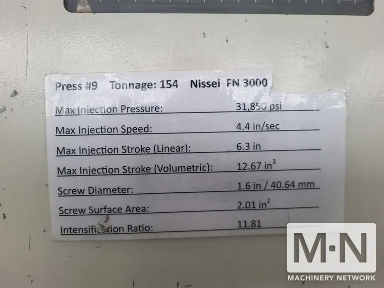 OverviewDescription154 TON 7 OZ NISSEI MODEL FN3000-25A INJECTION MOLDING MACHINE MFG 2004 CORE PULL