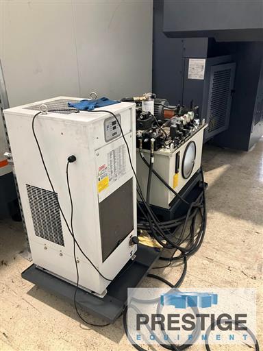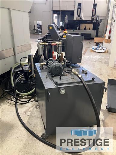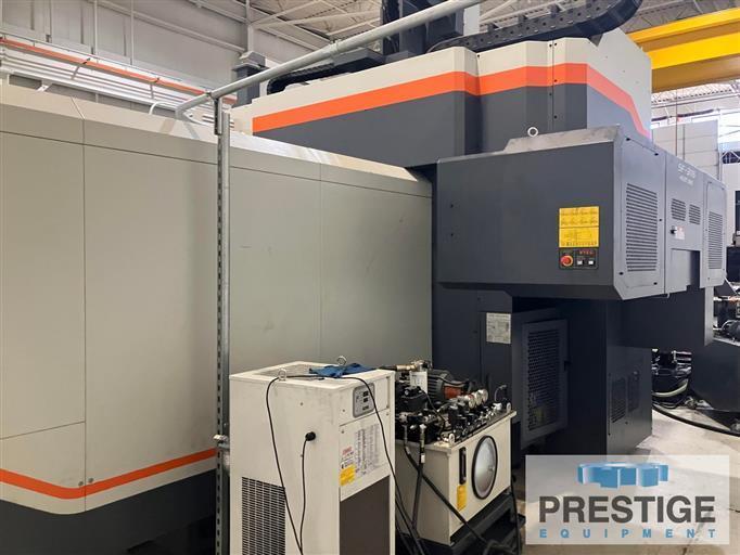 Table size 118.11" x 59.1" Table Capacity 22,048 lbs Table Travel, X-Axis 122.05" Head Travel, Y-Axis 62" Ram Stroke, Z-Axis 31.49" Spindle Speeds, Max 10,000 RPM Spindle Taper Cat #50 Spindle Motor 35 HP Equipped With: Fanuc OiMF CNC Control 32-Station Automatic Tool Changer Coolant through spindle Integral Spindle Motor Drive Chip Conveyor Chiller Unit Note: Very Low Hours |