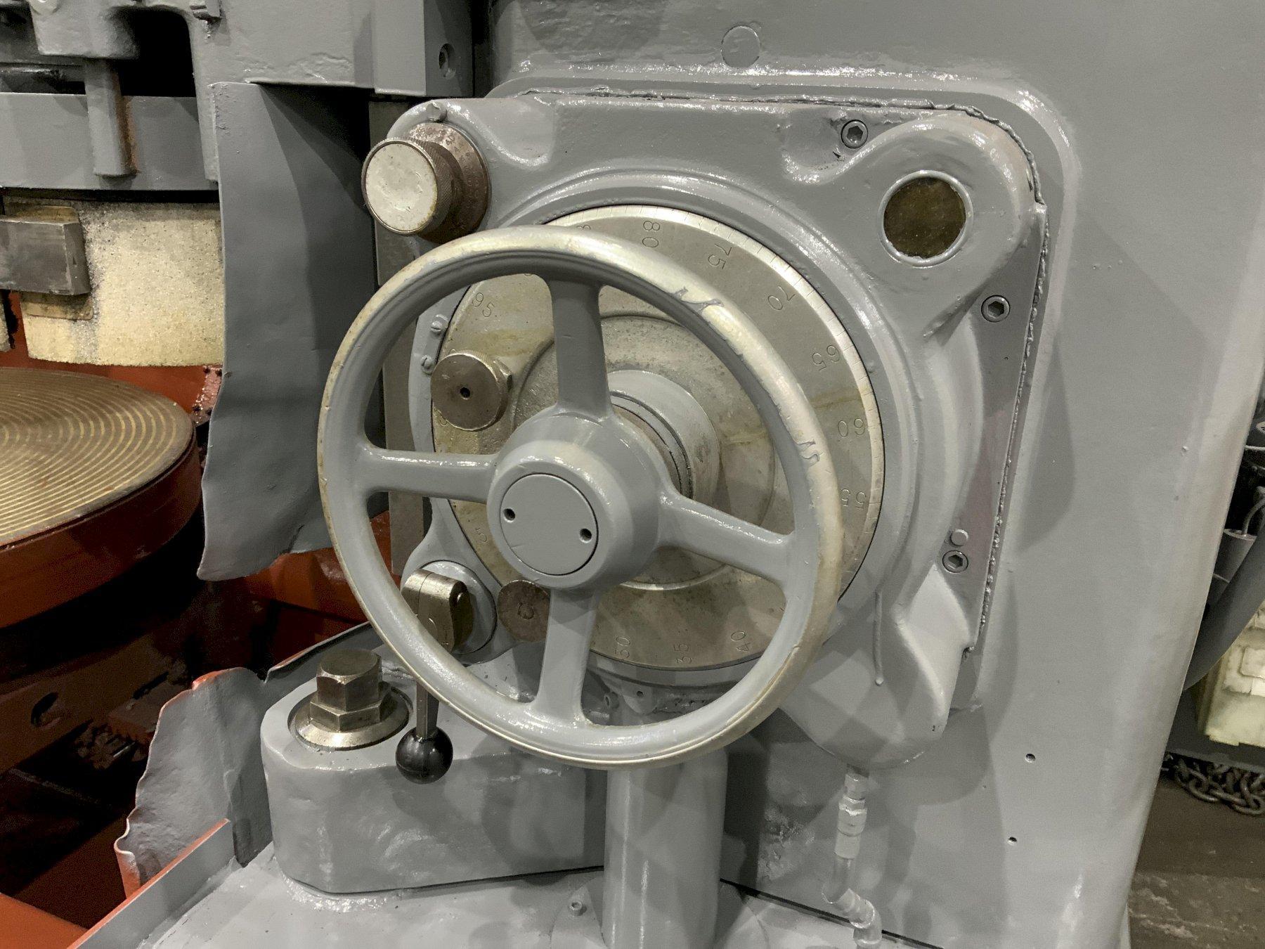 SERIAL .................................. 12677 MODEL ................................... 22-42 YEAR NEW ................................ 1980 TABLE CHUCK DIAMETER .................... 42" MAXIMUM WORK SWING ...................... 48" MAXIMUM WORK HEIGHT ..................... 24" TABLE SPEEDS ............................ (6) 6 TO 33 RPM POWER DOWNFEED RANGE .................... .004 TO .080 IPR SEGMENTED GRINDING WHEEL DIAMETER ....... 22" ELECTRO-MAGNETIC TABLE CHUCK CONTROLS ... YES COOLANT ................................. YES GRINDING SPINDLE MOTOR .................. 40 HORSEPOWER |