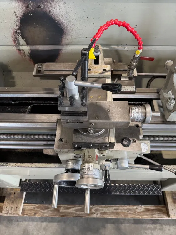 Reference # 8018 Model # 1340VS Serial # 43189 Year of manufacture- 2004’ Swing over bed- 13” Swing in gap- 19” Swing over cross slide- 7.6” Distance between centers- 40” Spindle speeds- 40 – 2,000 Variable speed Spindle nose- D1-4 Spindle bore 1.56” Inch threads- 2 – 56 T.P.I. Metric threads- 0.5 – 12mm Longitudinal feeds- 0.0016 – 0.046” Cross feeds- 0.0005 – 0.015” Cross slide travel- 6.18” Compound travel- 3.75” Compound width- 4.5” Bed width- 8.5” Tailstock quill diameter- 1.56” Tailstock quill travel- 4” Tailstock taper- #3 Morse |