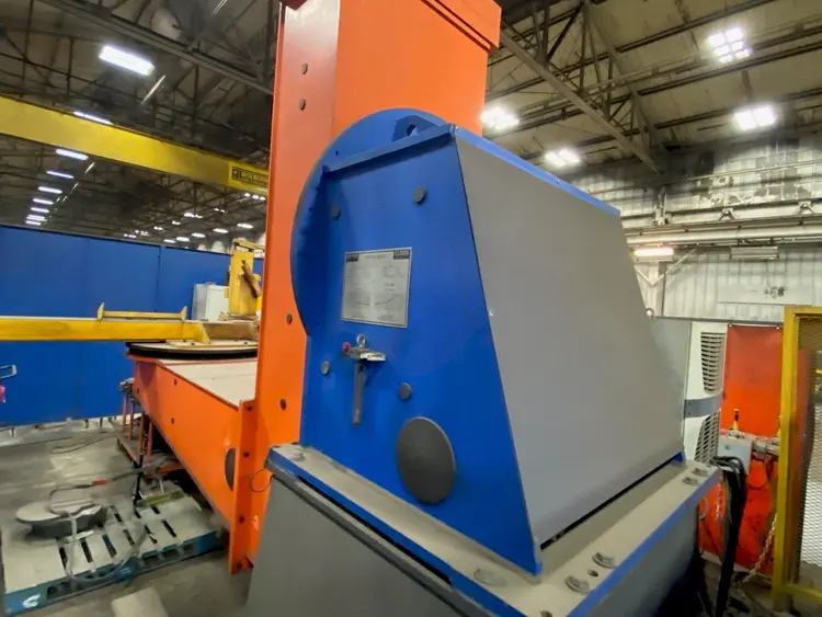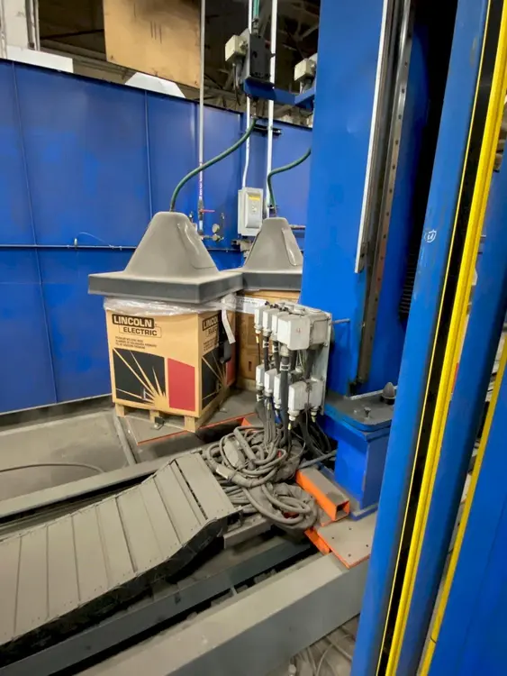 The Cell consists of a fully programmable 7-Axis welding robot programmed to travel longitudinally along a 10 M long base. Vertical travel of the robot is 1.5 M. Parts are fixtured on (2) CLOOS positioners which are independently programmable and can be synchronized with the welding robot enabling the system to access difficult areas and follow complicated contours.