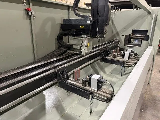 CNC Machining center with 3 controlled axes, used for the working of aluminium, PVC, light alloys and steel up to 3 mm. X-axis stroke: 169"