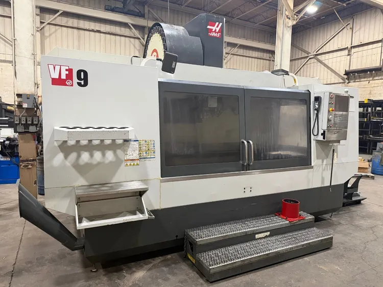 OverviewDescriptionUsed 2010 Haas VF-9/50 vertical CNC machining center available. Features 84"x36" table, 30 hp motor, 7,500 RPM spindle, CAT 50 taper, and 30 ATC. Equipped with Haas CNC control, thru spindle coolant, Renishaw probing, and more. Ideal for precise manufacturing needs. Brand: Haas