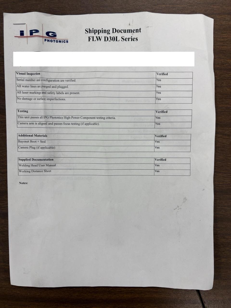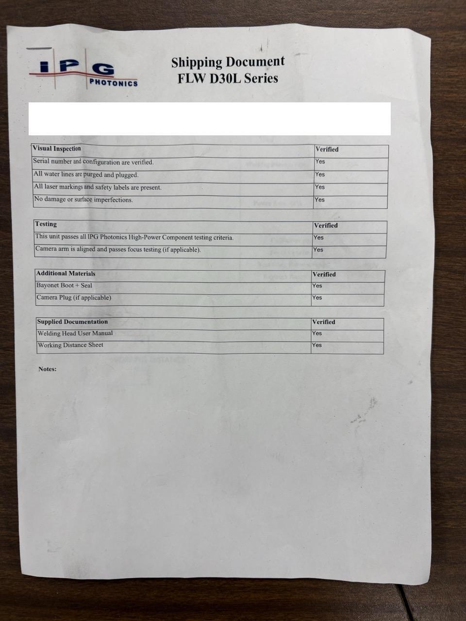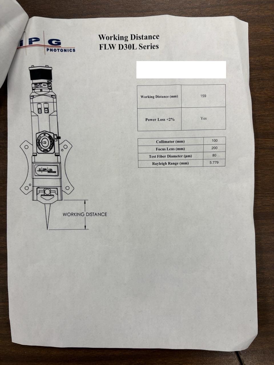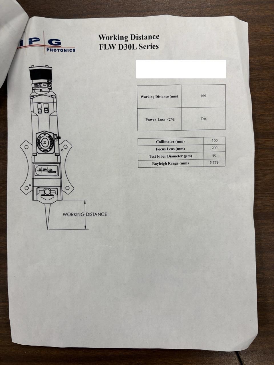 All specifications are assumed to be correct but must be confirmed by the purchasing entity.,Electrical: 230V, Single-Phase Approximate Dimensions: 29′ x 10′ x 7′ Approximate Weight: 17,000lbs All specifications are assumed to be correct but must be confirmed by the purchasing entity.,Equipped With Original IPG Manuals Chiller TopJet Fume Extraction System All specifications are assumed to be correct but must be confirmed by the purchasing entity. |