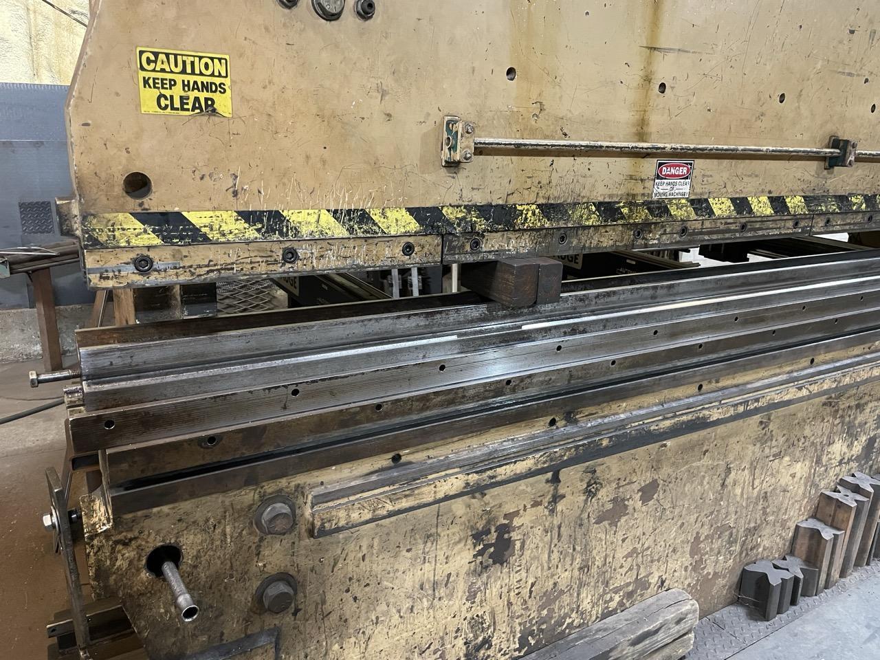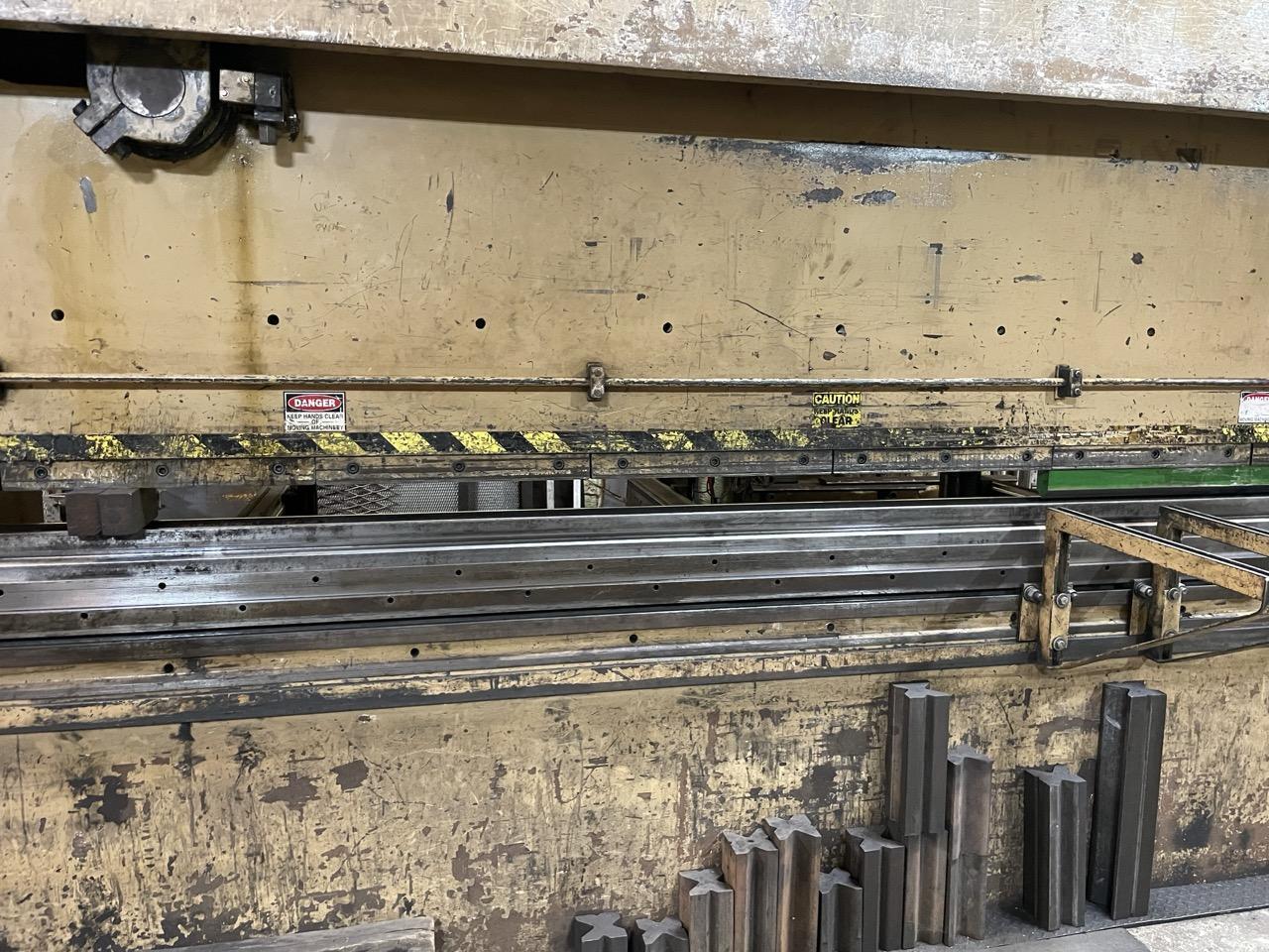 All specifications are assumed to be correct but must be confirmed by the purchasing entity.,EQUIPPED WITH: All specifications are assumed to be correct but must be confirmed by the purchasing entity.,In-Line Depth Stop Hydraulic Pressure Tonnage Control w/Gauge Portable Control Station w/(2) Controls: – Inch Control – Emergency Stop Operation & Parts Manual All specifications are assumed to be correct but must be confirmed by the purchasing entity.,MACHINE FEATURES: All specifications are assumed to be correct but must be confirmed by the purchasing entity.,“Large Bore” Single Hydraulic Cylinders Massive “Heavy Duty” Welded Frame Full Tonnage – Entire Length Of Bed & Ram Stroke Manifold Centralized Lube System Hand/Foot Safety Sequence w/Foot Switch +/- 0.001” Ram Repeatability Simple & Precise Ram Adjustment All Components “Off The Shelf” Off-Center Load Capability All specifications are assumed to be correct but must be confirmed by the purchasing entity. |