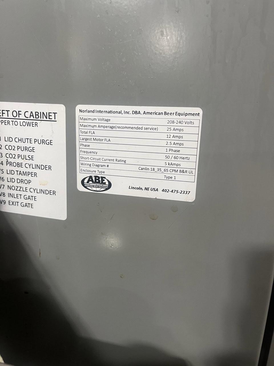 All specifications are assumed to be correct but must be confirmed by the purchasing entity.,This system currently has spacers to do both 12oz standard and 16oz standard cans beverage. All specifications are assumed to be correct but must be confirmed by the purchasing entity.,Spacers to do 19.2oz cans along with 12oz sleek available. All specifications are assumed to be correct but must be confirmed by the purchasing entity.,System Includes: – 7 head In-Line CO2 purge station – 7 head automatic filler – Lift-n-fill superior nozzle technology – Quick change lid magazine – Lid pick-in-motion – CO2 pressurized lid chute with integrated anti-jamming automation – Lid Detection / Rejection system – Automated Servo seamer with wash down IP67 servo motors – Automated can reject and real-time seam analysis system – External Can rinser – Air-blow can dryer – Main conveyor system with wash down motor – Complete stainless steel drip tray system with central drain – Superior PLC controls w/ oversized touch screen display – iPad and iPhone access for remote monitoring, diagnostics, and control Features / Advantages – Up to 35 cans/minute capacity based on 12oz volume – Modular design allows for doubling capacity up to 65 cans / minute – 304 Stainless Steel construction – Transparent enclosures around filler, seamer, rinser – Operator friendly 33″ Conveyor height * Air compressor not included All specifications are assumed to be correct but must be confirmed by the purchasing entity.,Patent-pending Torque Monitor instantly inspects and assesses seam accuracy on every can. – Seams not meeting a pre-determined, measured specification are rejected, ensuring maximum quality and shelf stability. – Greatly reduces product loss, and shelf spoilage versus manual inspection. – Minimizes the need for tedious, manual, tool adjustments as many modifications are made on touchscreen. – Utilizing a state-of-the-art, 24 bit Encoder with Servo Positional Accuracy means, repeatable, precision seams within 0.15 degrees. – Custom developed algorithm allows for precise seam analysis, never seen before in this class of equipment. – Because of continuous data logging, maintenance can be done on a predictive not a reactive basis. – System diagnostics available for remote troubleshooting. All specifications are assumed to be correct but must be confirmed by the purchasing entity. |