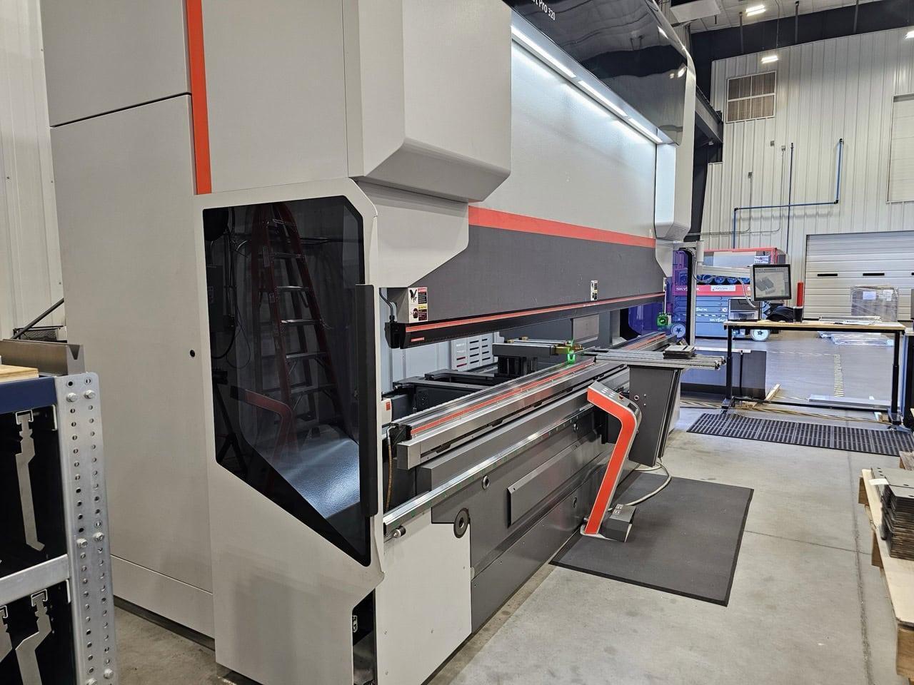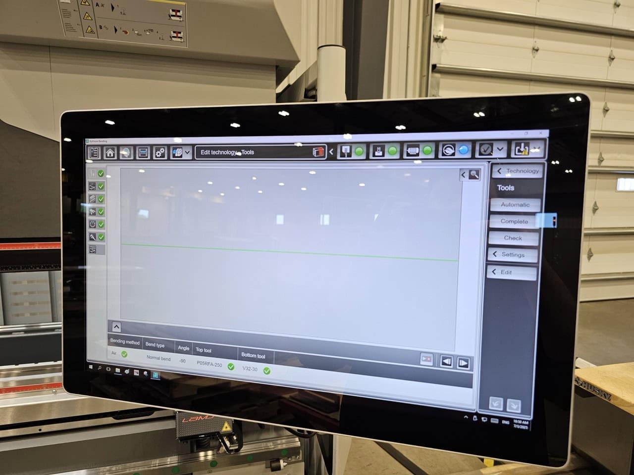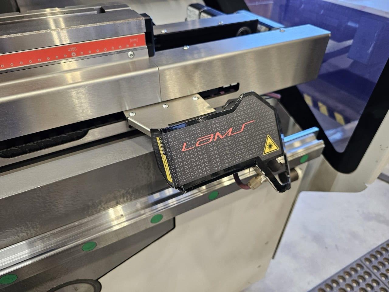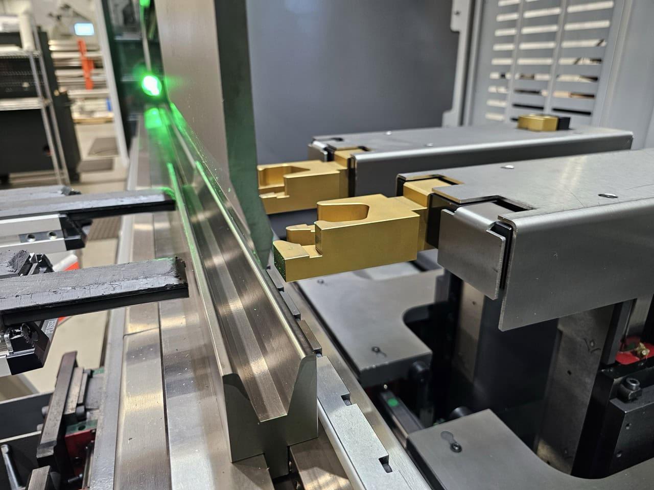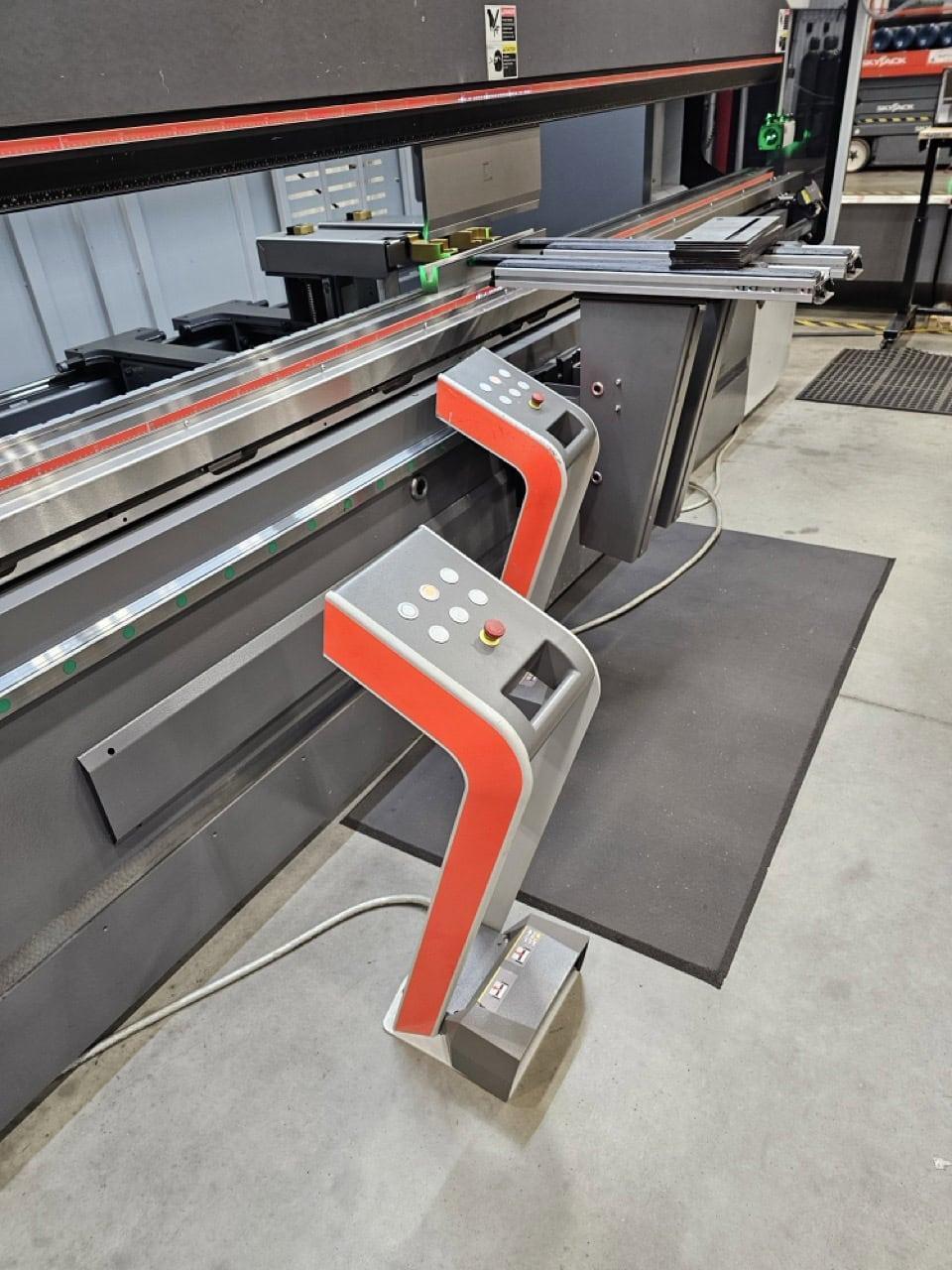 All specifications are assumed to be correct but must be confirmed by the purchasing entity.,Weight 60186.2 lbs Length, approx. [L] 207.1 in Width, approx. [W] 78.7 in Height, approx. [H] 147.6 in Proposed foot print approx. [LF x WF x HF] 276x177x165.4 in All specifications are assumed to be correct but must be confirmed by the purchasing entity.,Equipped with: All specifications are assumed to be correct but must be confirmed by the purchasing entity.,Upper tool clamping type RF-A HD Hydraulic lower tool clamping 6-axis backgauge Fast Bend+ G2 safety system with automatic height adjustment, LED high performance illumination of the working area (front and rear) Optical Bend Guiding System upper tool clamping Laser Angle Measuring System (LAMS) Hardened table Additional control console with foot switch for 2nd operator or station (programmable) 1 PartID-Scanner Heat exchanger, assembled on the electric cabinet Oil cooling unit All specifications are assumed to be correct but must be confirmed by the purchasing entity. |
