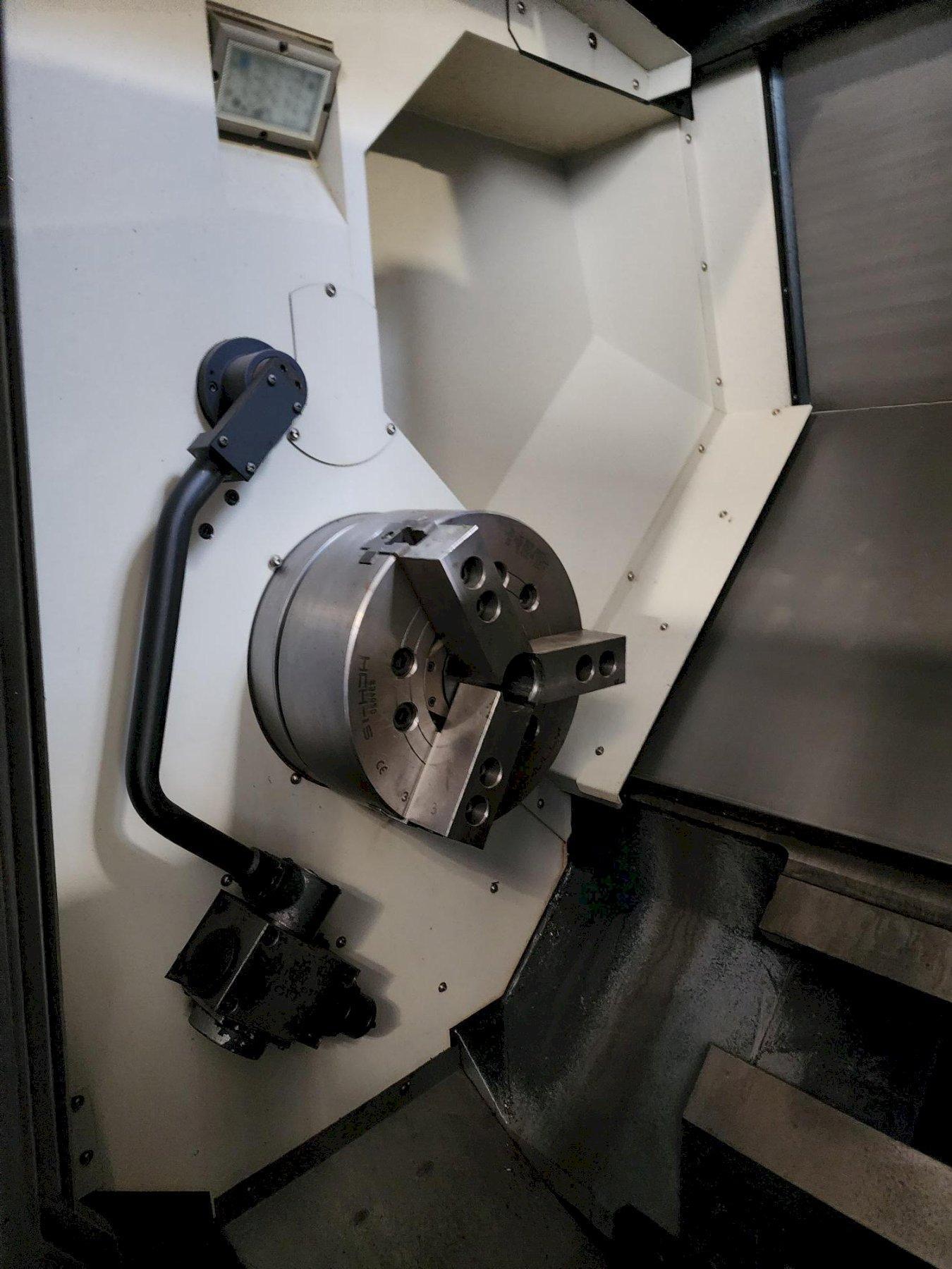 All specifications are assumed to be correct but must be confirmed by the purchasing entity.,Travel & Motion X-Axis Travel: ~13.8″ (352 mm) Z-Axis Travel: ~43.5″ (1105 mm) Rapid Traverse: ~16 m/min X & ~20 m/min Z All specifications are assumed to be correct but must be confirmed by the purchasing entity.,Spindle & Power Max Spindle Speed: ~2,000 RPM Spindle Power: ~50 HP (~37 kW) Spindle Torque: ~2431 Nm (~1793 ft-lbs) Chuck Size – 15 in 482 Cutting Hours All specifications are assumed to be correct but must be confirmed by the purchasing entity.,Tooling & Features Turret: 12-station BMT-75 Live Tooling / Mill-Drill: Yes (rotary tool capabilities) Control: Typically Fanuc Series i Chip Conveyor: Common options on this model All specifications are assumed to be correct but must be confirmed by the purchasing entity.,Machine Size & Weight Overall Dimensions: ~183″ L × 86″ H × 81″ W Weight: ~22,000 lbs (~10,000 kg) All specifications are assumed to be correct but must be confirmed by the purchasing entity. |