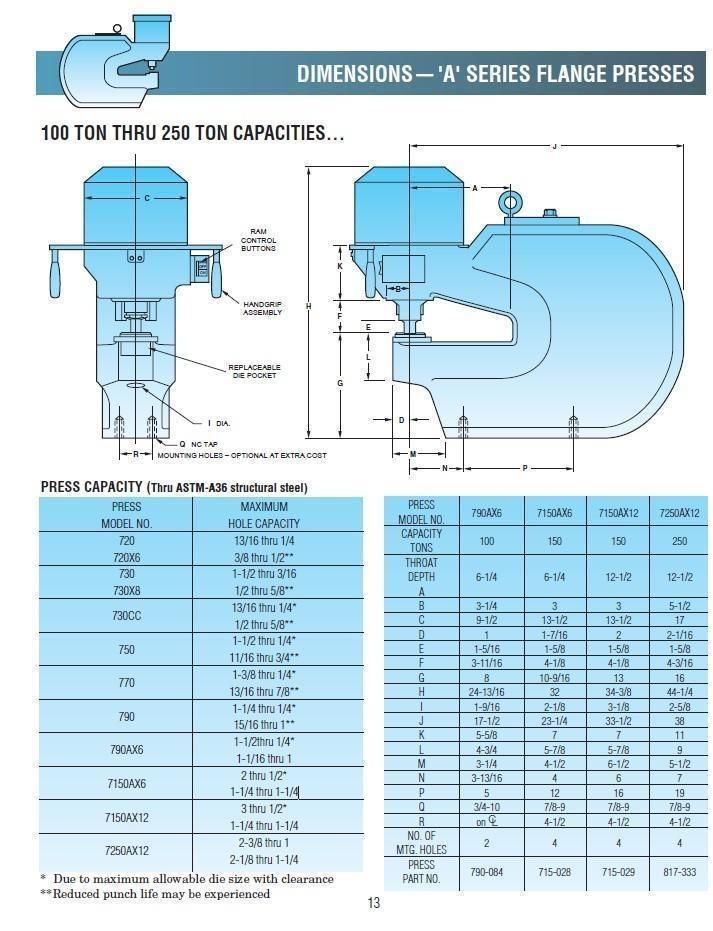MAXIMUM HOLE CAPACITY .... 1-1/4" THRU 1-1/4" PLATES