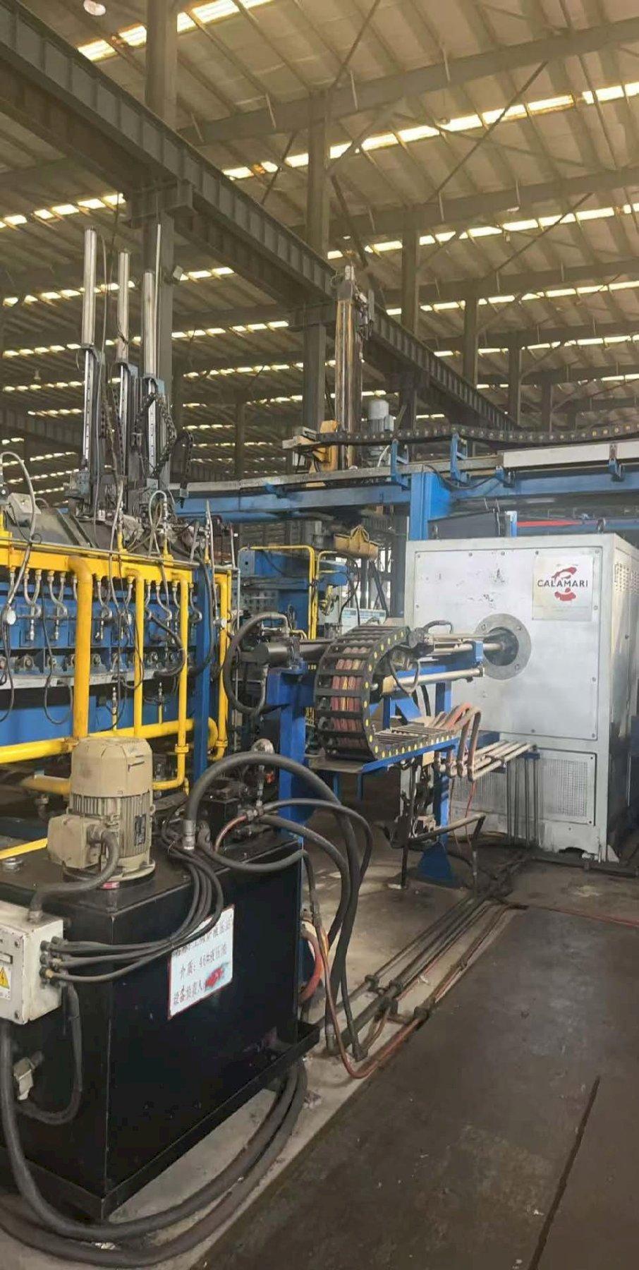 Stock # 14591 1. Mechanical configuration: 1.1 The nominal total extrusion force of the equipment is 27MN 1.2 Aluminum rod specification φ228x1280 1.3 Ingot cylinder φ236x1330 1.6 Extruder center height 1.7 Discharge size φ240x330 2. Hydraulic system 2.1 High pressure piston pump A4VS0 355 EO2 2.2 Auxiliary oil pump A4VS0 71DR 3. Electrical system 3.1 Main oil pump motor ABB 200 KW 3.2 Auxiliary oil pump motor ABB 55 KW 3.3 PLC Siemens S7-440 3.4 HMI Siemens 4 Cooling system Plate cooling 2. Auxiliary equipment 1 Aluminum rod heating furnace, 2 Mold heating furnace φ427*250*6 3 Discharge water quenching, 4 Puller 5 Cold bed 9 meters*50 meters 6 Straightener 150T 7 Finish saw 8 Mold base φ430*460 **Temporary Specifications Subject to Revisions** **PRICE QUOTED AS IS WHERE IS SUBJECT TO PRIOR SALE** **ALL SPECIFICATIONS ARE SUBJECT TO VERIFICATION** |
