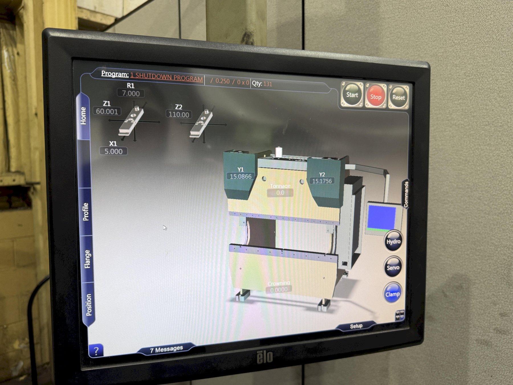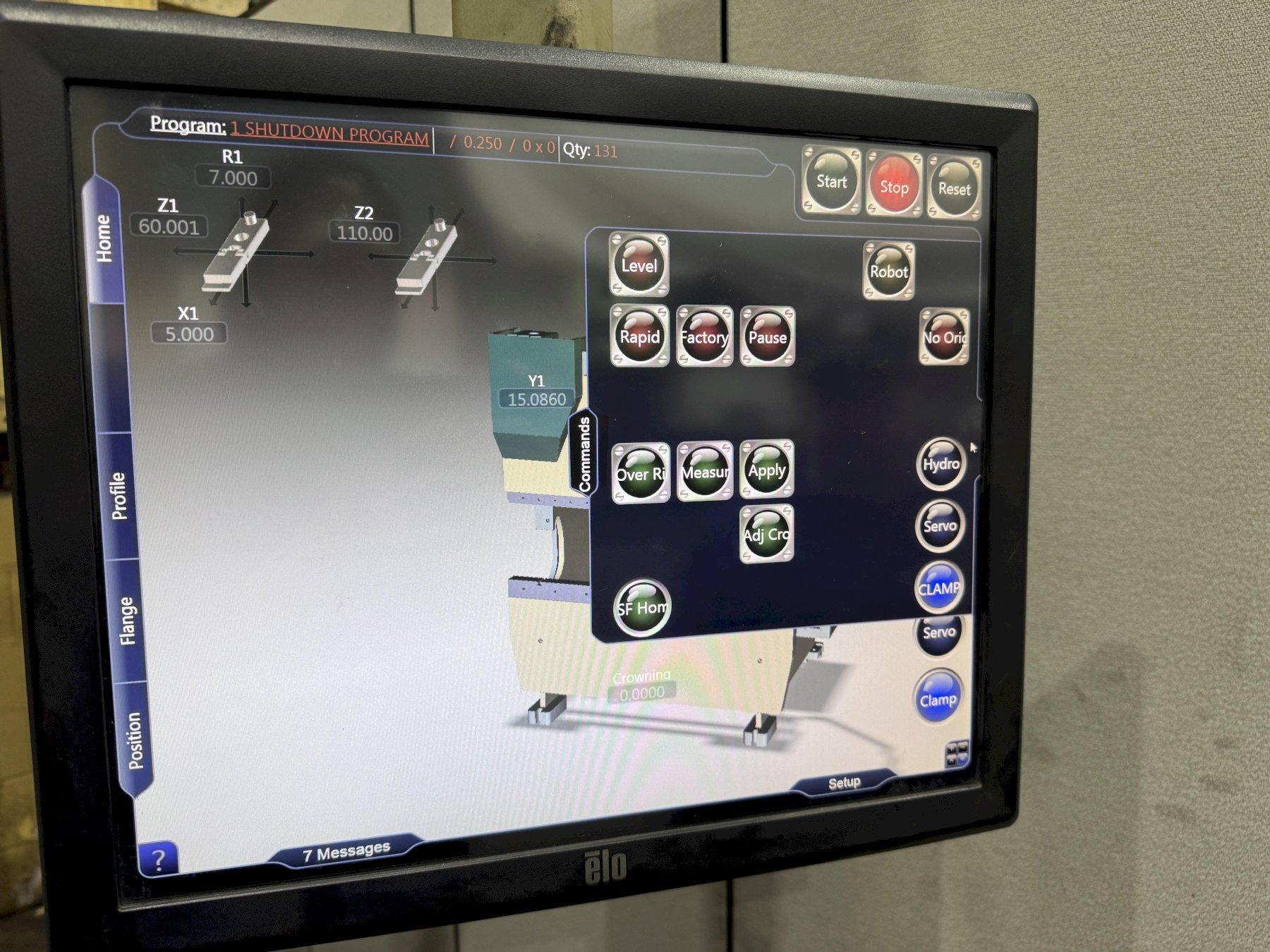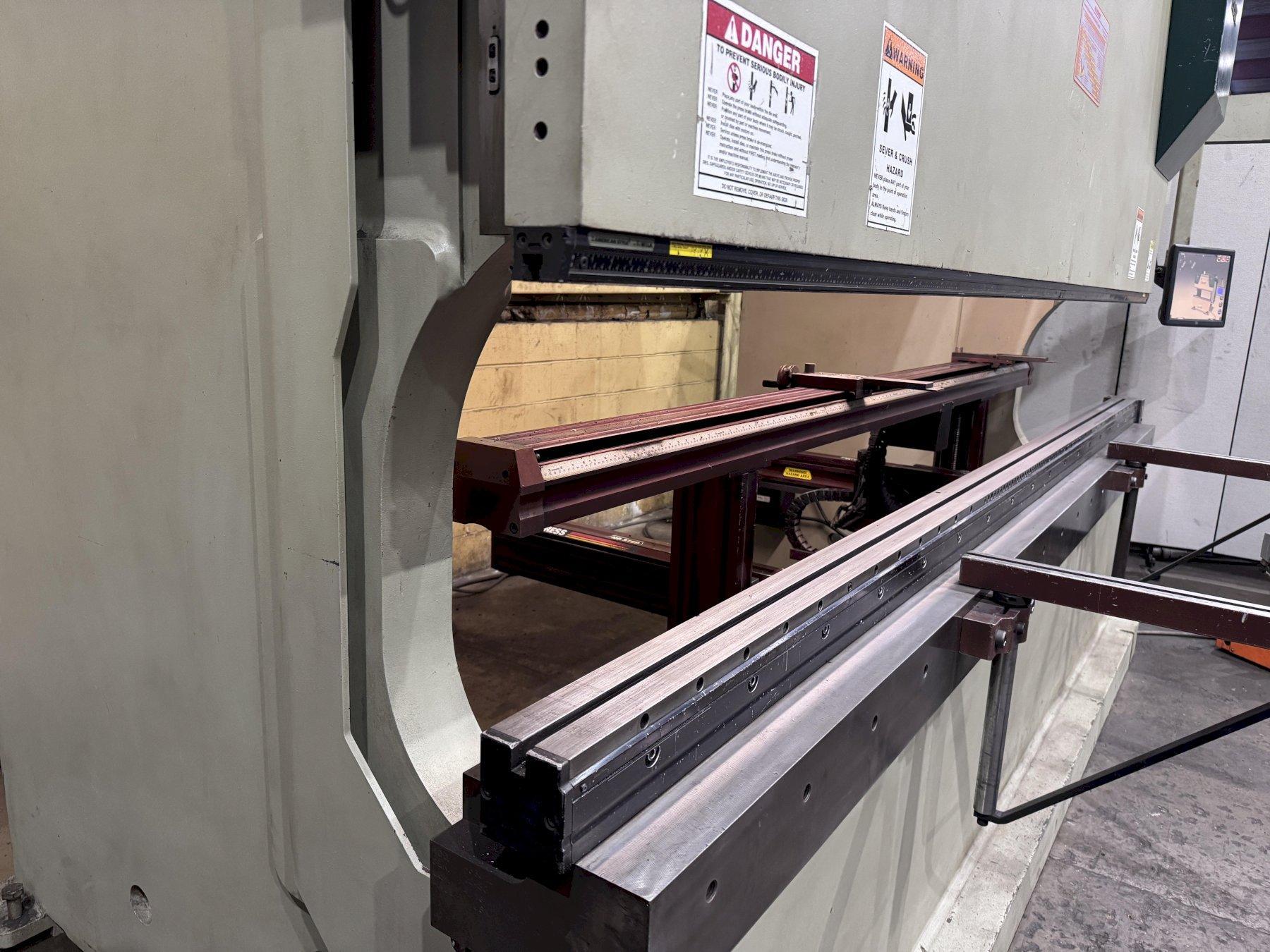 SERIAL ................................... 12480 MODEL .................................... 435012 CAPACITY ................................. 350 TON YEAR NEW ................................. 9/2016 OVERALL LENGTH OF BED .................... 12' DISTANCE BETWEEN HOUSINGS ................ 10'6" STROKE ................................... 12" MAXIMUM DAYLIGHT ......................... 20" MINIMUM DAYLIGHT ......................... 10" WIDTH OF BED ............................. 10" THROAT ................................... 14" RAPID ADVANCE SPEED ...................... 320 IPM PRESSING SPEED ........................... 24 IPM RETURN ................................... 250 IPM HYDRAULIC DIE CLAMPING ................... YES CNC BACK GAUGE ........................... 4 AXIS CONTROL .................................. VISION TOUCH SCREEN CROWNING DIE ............................. YES DUAL PALM BUTTON & ELECTRIC FOOT PEDAL ... YES FLOOR STANDING ........................... NO PIT REQUIRED MAIN MOTOR ............................... 40 HORSEPOWER |