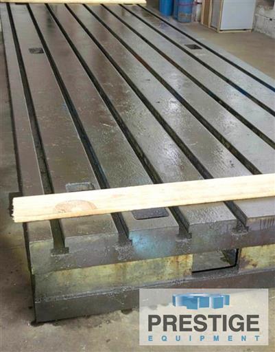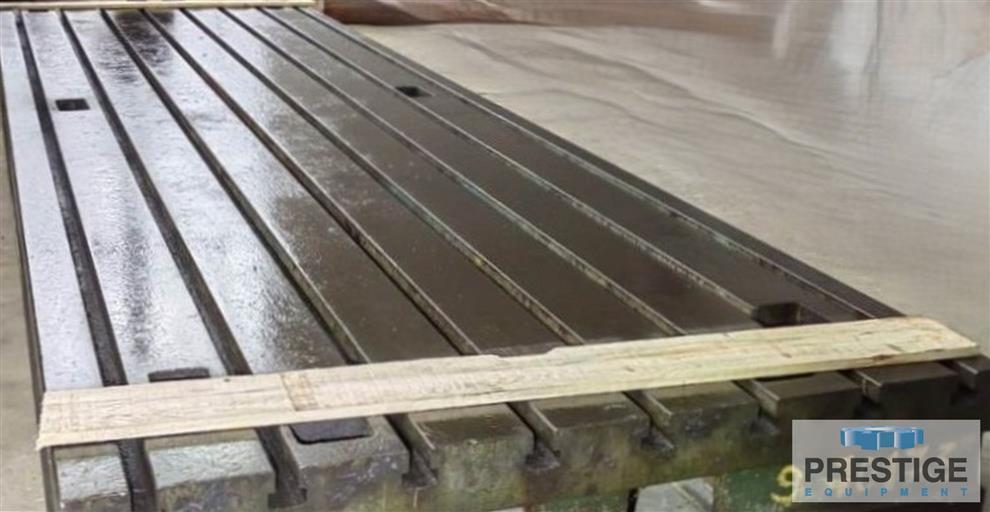 Width 78.74" Length 236.22" Thickness 15.74" T-Slot Center Distance 9.874" T-Slot Center Distance from Edge 4.13" Number of T-Slots, Longitudinal 8 T-Slot Depth 2.95" T-Slot Width, Top 1.57" T-Slot Width, Bottom 2.75" Approximate Weight 25,300 Lbs Equipped With: T-Slotted Cast Iron Construction NOTE: |