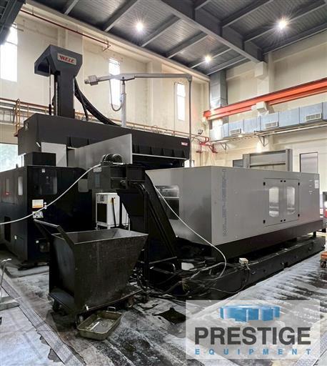 X-Axis Travel 196.85" Y-Axis Travel 177.16" Z-Axis Travel 55.11" Distance Between Columns 137.79" Table Size 196.85" x 110.23" Spindle Speed (Gear Type) 8,000 RPM Spindle Taper BT#50 Equipped With: Fanuc 18iMB CNC Control 90 Station Automatic Tool Changer Coolant Thru Spindle Spindle Oil Chiller Heat Exchanger Chip Conveyor NOTE: Full 5-Face Machining with Right Angle Head. |