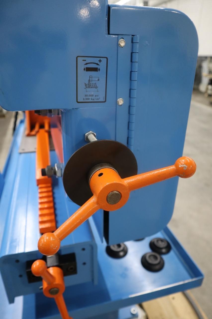 Cutting Capacity @90 Degrees: 10" X 16" Rectangle - 10.75" Round Miter Capacity (Degrees): 45 Degrees Miter Cutting Capacity (Inches): 9" W x 10.75"H at 45 Degrees Wheel Size: 14.5" Diameter Blade Size: 1" x 158" x .035" Max Blade Speeds: Variable Speed 105-275 FPM Drive Motor: 2 HP Description: DoAll 400S Band Saw is an introductory machine in the StructurALL family of band saws and is suited for cutting all types of structural materials. Swiveling 45 degrees, it's the ideal machine for the small to medium fabricator or machine shop, looking to make extremely accurate (straight or miter) cuts in smaller quantities. The 400S features a 9" high x 16" wide capacity of rectangles and 10-3/4" rounds at 90 degrees. This manual machine can be equipped with a variety of options to further ease operation, such as pneumatic head-lift and pneumatic vise attachments. Equipped With: 45 Degree Swivel Mitering Head, Manual Clamping Vise, Manual Blade Tensioning, Variable Band Speeds, Variable Blade Feed Rate, Manual Elevation, Portable on Casters with Screw Feet and Machien Pads, Coolant Pump, Powered Blade Cleaning Brush, 2 HP Drive Motor Electrics: 230 Volt, 3 Phase |