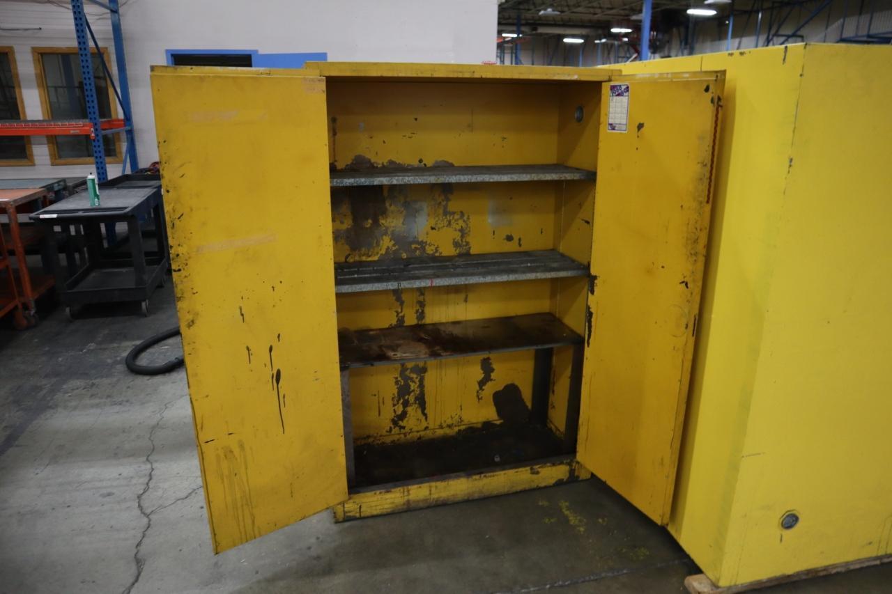 Lot 600: Justrite 45 Gallon Combustible Liquids Storage Cabinet, 2 Door, 3 Shelf Manufacturer: Generic Model: Generic Main Unit Approx Weight: 0.00 lbs Main Unit Dimensions (in inches): Length: 43.00" Width: 18.00" Height: 65.00" Seller Company: Aljon Tool, Inc. Seller Contact: Machinesused.com Aljon Phone: (763) 745-1166 Item Location: Aljon Tool, Inc., 15700 28th. Ave. No., Plymouth, MN 55447 Location Contact: Machinesused.com Aljon Phone: (763) 745-1166 Inspection Date & Time: Thursday-Friday, February 19-20, 2026 9AM-4PM Dock Door: 12' x 14' H Door Ground Level Doors Loading Dock: Ground Level and Truck Cock Level Doors Removal Dates and Times: This item must be removed between Monday, March 2, 2026 and Friday, March 6, 2026