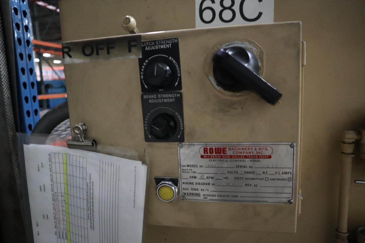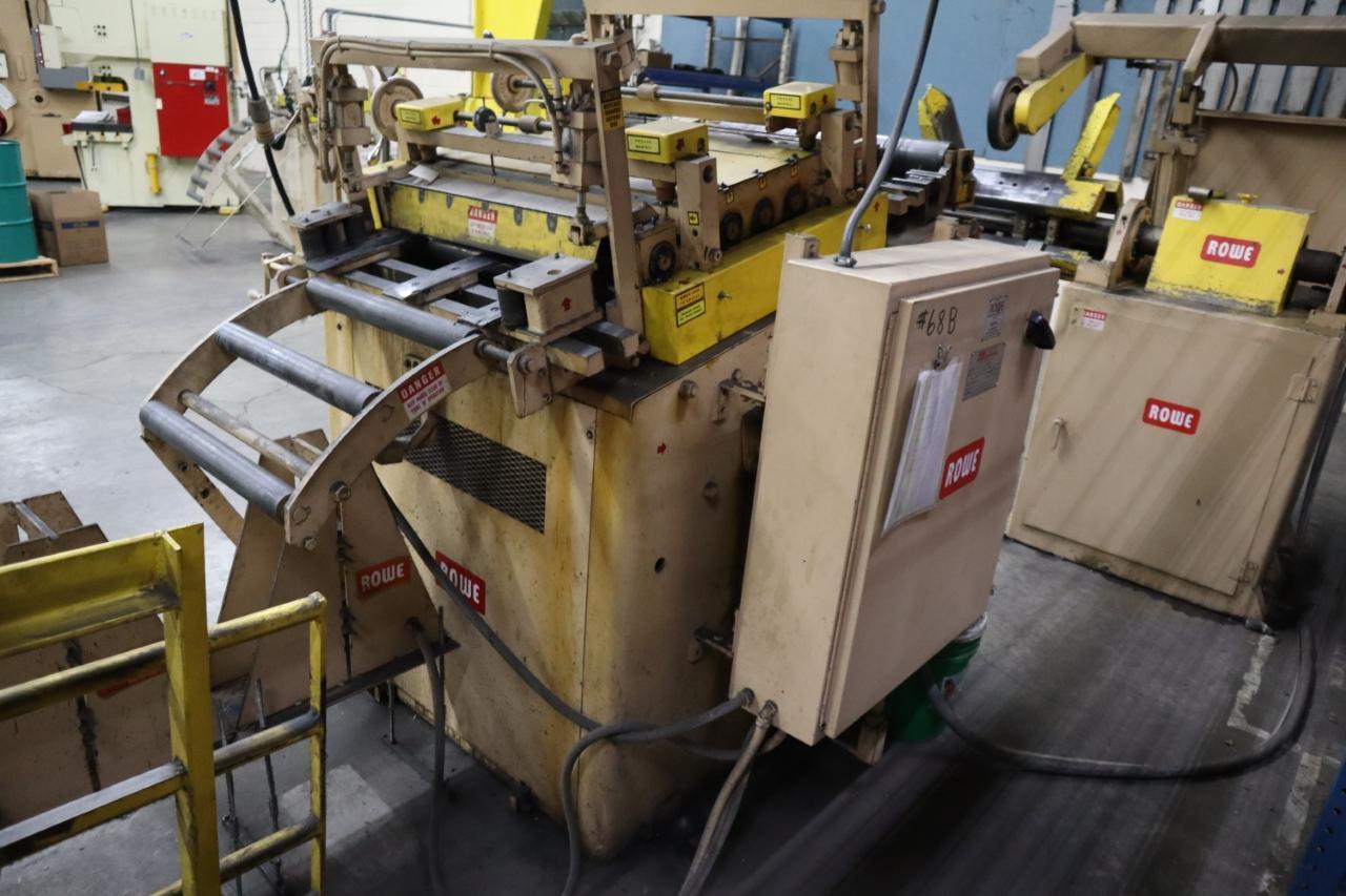 Lot 619: Rowe Press Feeding System. **Note - To Be Sold Only if Bliss Press System Does Not Sell** Equipped With: Rowe Press Feed System Consisting of: Rowe FDC-053-230 Press Feed (Serial: 26481) .020 - .074" Thickness Capacity x 30" Wide Capacity, Rowe PLC II Controls, Rowe PM-FDC-053-230 Control Panel, Rowe TTS-30, Rowe C3-30 30" Straightener (Serial 26479), Rowe 4030-DSJ Motorised Coil Reel (Serial: 26478) 4,000 Lb Capacity, 30" Max Coil Width, 60" Max Coil OD, Overarm, Peeler, Control. NOTE: This Lot will be Awarded ot the Highest Bidder ONLY IF the BLISS Press Lot #560 with this System Included - DOES NOT SELL AT THE AUCTION. Description: Rowe Coil Reel, Straigthener, and Press Feed with Controls. NOTE: This Lot will be Awarded ot the Highest Bidder ONLY IF the BLISS Press Lot #560 with this System Included - DOES NOT SELL AT THE AUCTION. Manufacturer: Generic Model: Generic Main Unit Approx Weight: 0.00 lbs Main Unit Dimensions (in inches): Length: 0.00" Width: 0.00" Height: 0.00" Components: Rowe Coil Reel: Length: 85.00" Width: 56.00" Height: 86.00" Rowe Straightener: Length: 84.00" Width: 73.00" Height: 74.00" Rowe Pedestal Control Panel: Length: 32.00" Width: 19.00" Height: 52.00" Rowe Peeler: Length: 85.00" Width: 22.00" Height: 50.00" Rowe Electrical Cabinet: Length: 37.00" Width: 41.00" Height: 66.00" Rowe Press Feed: Length: 61.00" Width: 45.00" Height: 36.00" Seller Company: Aljon Tool, Inc. Seller Contact: Machinesused.com Aljon Phone: (763) 745-1166 Item Location: Aljon Tool, Inc., 15700 28th. Ave. No., Plymouth, MN 55447 Location Contact: Machinesused.com Aljon Phone: (763) 745-1166 Inspection Date & Time: Thursday-Friday, February 19-20, 2026 9AM-4PM Dock Door: 12' x 14' H Door Ground Level Doors Loading Dock: Ground Level and Truck Cock Level Doors Removal Dates and Times: This item must be removed between Monday, March 2, 2026 and Friday, March 6, 2026