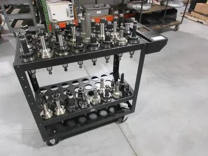 Lot 272: Big Bear Rolling Tool Cart with (64) CAT50 Pockets and (47) CAT50 Assorted Tool Holders Equipped With: Assorted CAT50 Tool Holders, End Mill, ER Collet 16-32, Shell Mill Holders Manufacturer: Generic Model: Generic Main Unit Approx Weight: 0.00 lbs Main Unit Dimensions (in inches): Length: 44.00" Width: 19.00" Height: 37.00" Seller Company: Polaris Industries - Monticello Seller Contact: Machinesused.com January Multishop Phone: (763) 745-1166 Item Location: Machinesused.com, 2410 Niagara Lane N., Plymouth, MN 55447 Location Contact: Machinesused.com January Multishop Phone: (763) 745-1166 Inspection Date & Time: By Appointment Normal Business Hours Monday-Friday Dock Door: 20'W x 16'H Ground / 9' x 10' Truck Door Loading Dock: Ground & Truck Level Doors, Concrete Lot Removal Dates and Times: This item must be removed between Tuesday, January 27, 2026 and Friday, February 6, 2026