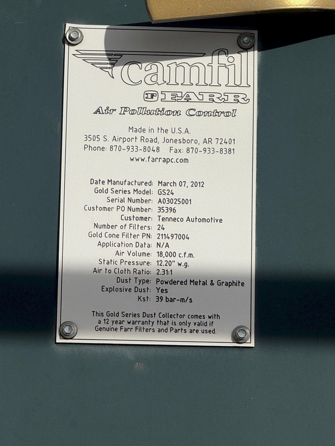 1,600 CFM FARR CAMFIL GOLD SERIES MODEL #GS2 DUST COLLECTOR: YOBRO #24036