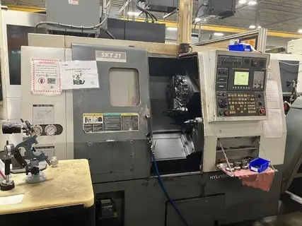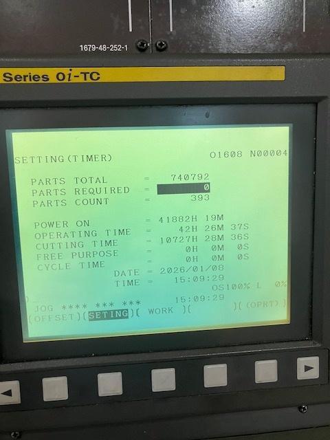 Max Turning Diameter: 13.80" Max Turning Length: 16.14" Max Bar Capacity: 2.56" Swing Over Bed: 21.65" Max Swing Over Slide: 13.80" Travels: X Axis Travel: 8.70" Z Axis Travel: 16.92" Rapid Traverse X Axis: 1417 IPM Rapid Traverse Z Axis: 1417 IPM Spindle: Spindle Nose: A2-6 Spindle Bore: 2.90" Spindle Speed: 4000 RPM Spindle Motor: 20 hp Turret: Turret Capacity: 12 Stations Turret Index Time: 0.5 Second Tailstock: Tailstock Taper: MT-4 Tailstock Quill Dia.: 2.75" Tailstock Quill Travel: 3.15" General: Power: 25 kva, 220v / 3-Phase Overall Dimensions: 94.68" x 64.96" x 73.62" High Weight: 8,600 lbs Equipped With: Fanuc 0i-TC CNC Control 8" Dia 3-Jaw Chuck A2-6, 4000 RPM Spindle 12 Station Automatic Turret Tool Presetter Arm Rigid Tapping Spindle Orientation Hydraulic Programmable Tailstock PCMCIA Card Interface USB Port Foot Switch Coolant System Chip conveyor Automatic Lubrication System Books & Manuals Levelling Pads |