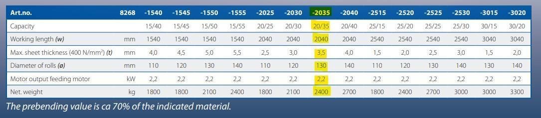 USED WDM MODEL B-2.6-48 4' X 20 GAUGE 3-ROLL INITAL PINCH PLATE...
