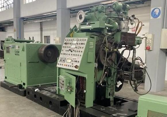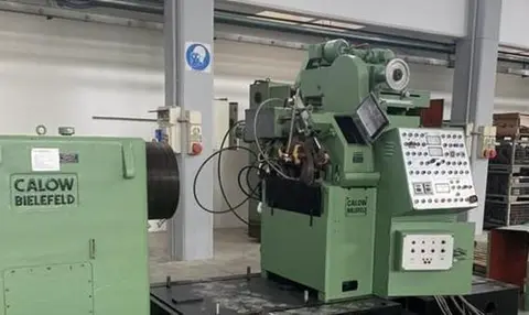 Stock # 14597 Manufacturer:.............CALOW Model:....................S-100 Finished size:............Ø 20 – 100 mm (0,787" -4") Speed Adjustable up to:.20 mt./min. Motor power:..............110 kW d.c. – Under Inverter Bars length:..............Up to 6,5 mt. Tension:..................440 V. – 50 Hz. COMPOSITION OF THE LINE Loading table Feeding roller conveyor Peeling machine CALOW S-100 Exit carriage Exit roller conveyor – Not available Main motor Chips evacuating belt conveyor Electric system Hydraulic power unit **TEMPORARY SPECIFICATIONS SUBJECT TO REVISIONS** **PRICE QUOTED AS IS WHERE IS SUBJECT TO PRIOR SALE** **ALL SPECIFICATIONS ARE SUBJECT TO VERIFICATION** |
