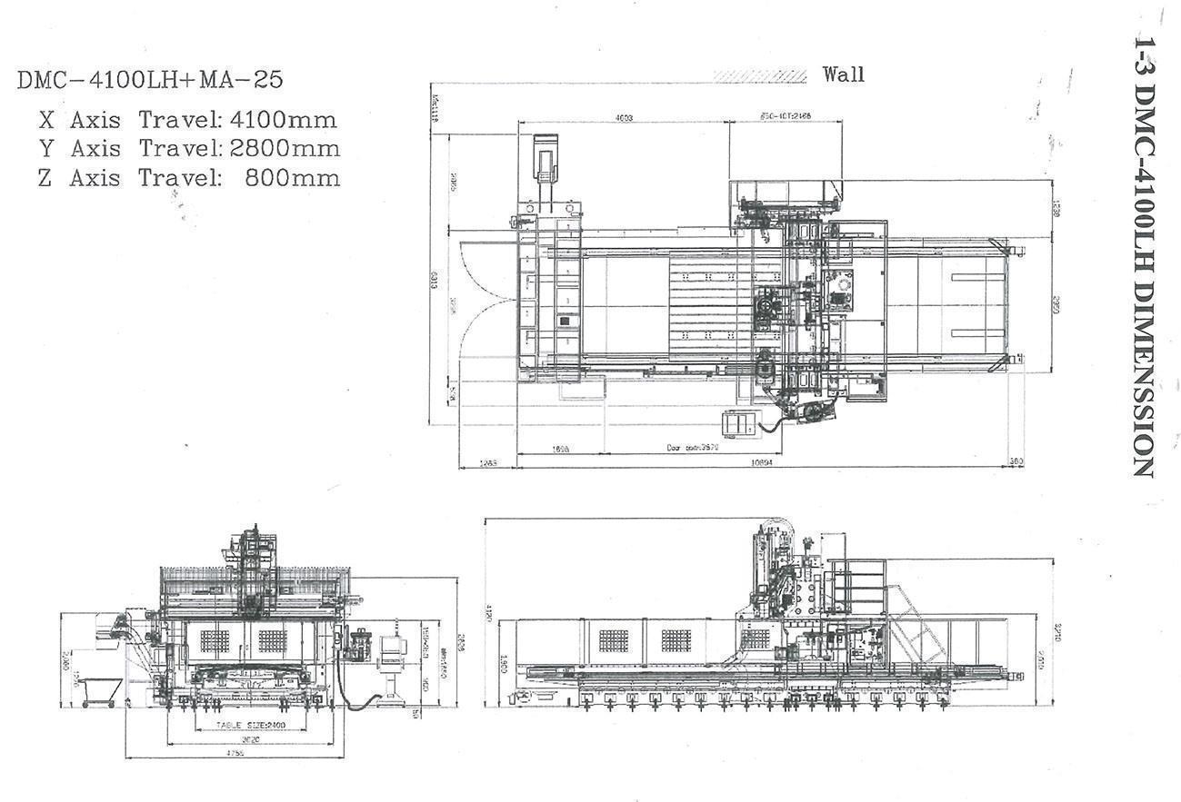 Additional infoType: DMC-4100LH 2800 mm between columns!! without milling head you can do classic vertical machining with the multi angle (MA-25) milling head you can machine many different faces MA-25 2-axis milling head - 30 kW - 2000 rpm - 1500 Nm torque > C-axis range: 0-360° - 2.5° > A-axis range: +/- 110° - 2.5° Cooling by spindle 40 bar Total power: 67 kW No foundation needed!