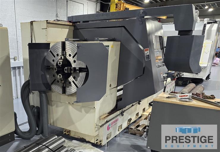 Swing Over Bed 39.4" Swing Over Cross Slide 26.8" Spindle Bore 12.5" Height Of Centers; From Flat Guide 19.68" Maximum Turning Length 157.48" Width Of Longitudinal Slide 22.5" Width Of Cross Slide 13.78" Travel Of Cross Slide 21.65" Spindle Speeds (4-Ranges) 0 - 1400 RPM Equipped With: Fagor 8055T CNC Control Front & Rear Chucks 12.5" Spindle Bore 4-Position Auto-Indexing Turret Steady Rest Tailstock Chip Conveyor 37 KW (50 HP) |
