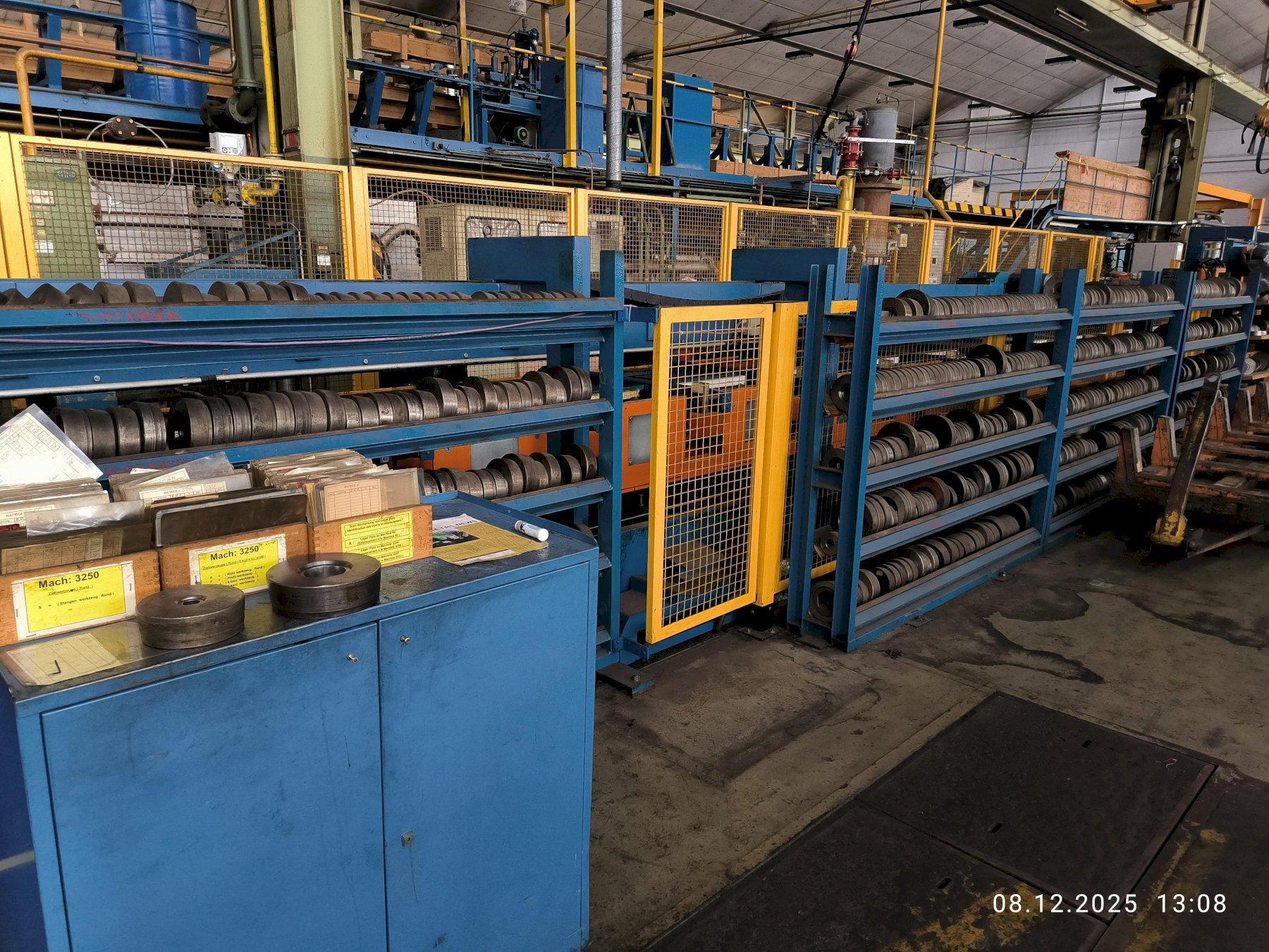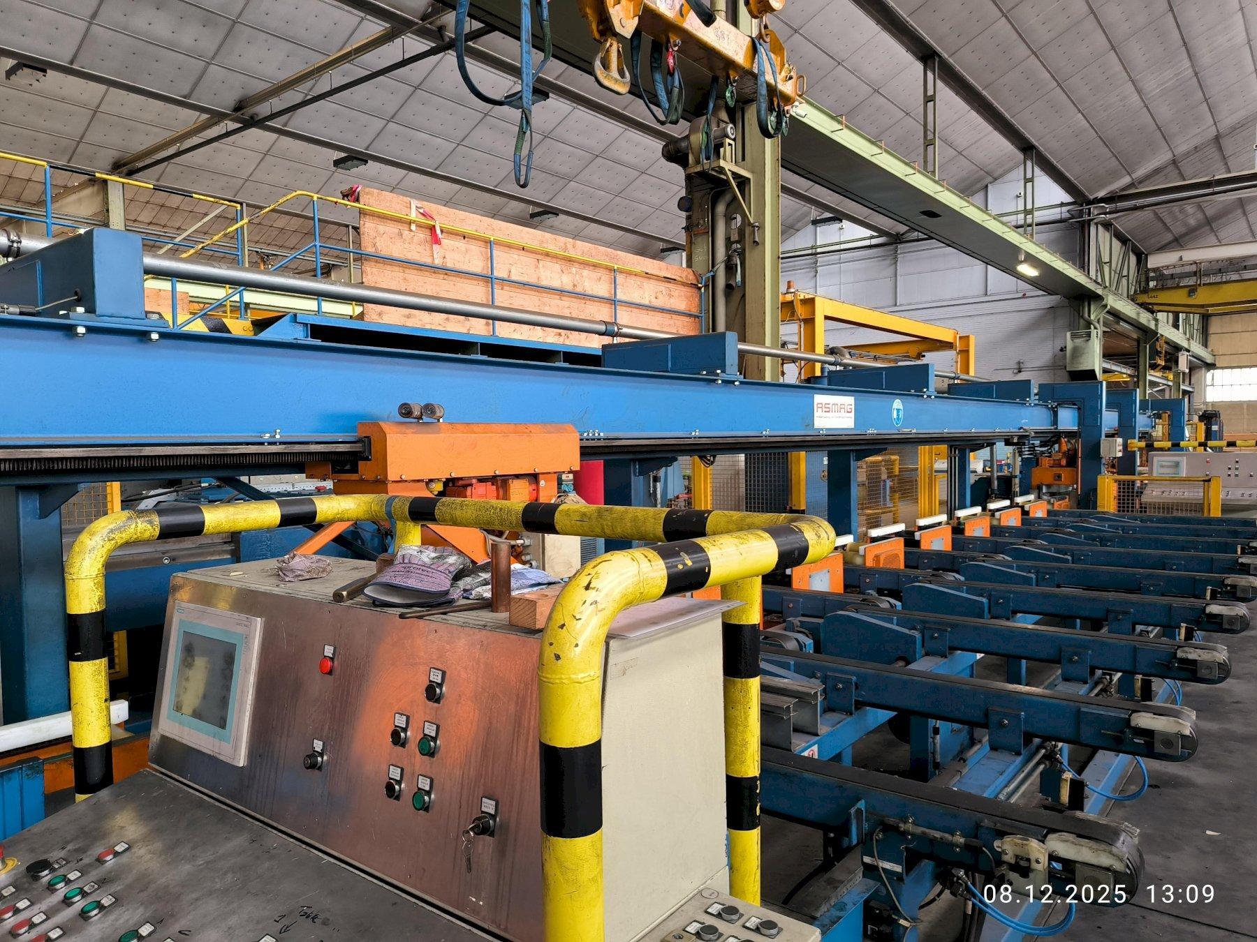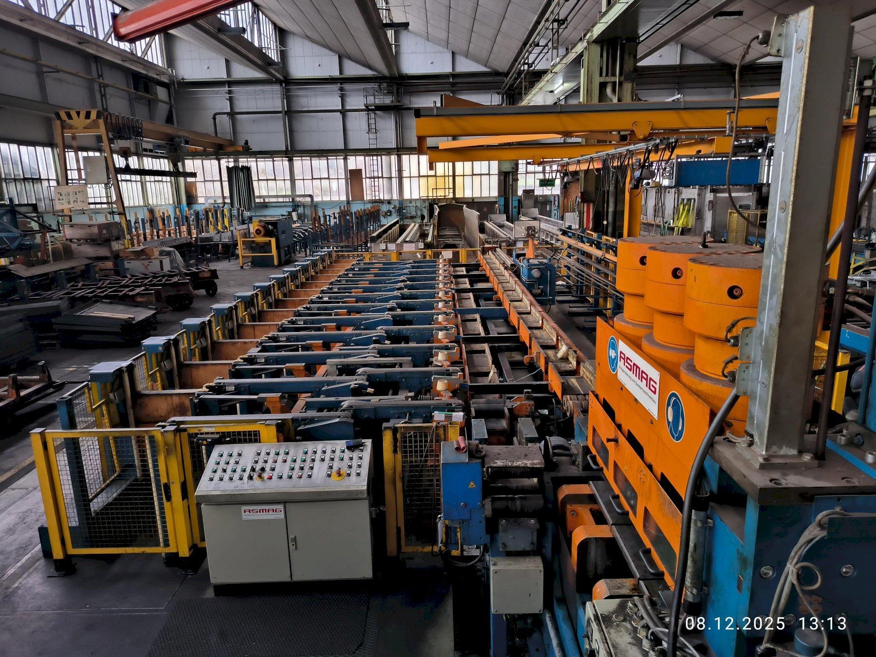 SPECIFICATIONS: MANUFACTURER - ASMAG TYPE - DRAWING AND STRETCHING MACHINE ZRM500 PROFILE FORMS - ROUND, SQUARE, HEXAGONAL, OCTAGONAL, SOLID BARS / HOLLOW PROFILES / FLAT BARS TENSILE FORCE - 500KN (600KN AT START FOR 2-3 SECONDS) DRAWING SPEED RANGE - (CONTINUOUSLY ADJUSTABLE) 5-60 METERS PER MINUTE MAX. DRAWING SPEED AT 300KN TENSILE FORCE - 38 METERS PER MINUTE PUSHER - MAX. PUSHING FORCE: 900KN / MAX. PUSHING SPEED: 80MM PER SECOND / PUSHER TRAVEL: 10 - 300mm / CLAMPING FORCE: 3 x MAX. 1400KN PULLER RETURN SPEED - 120 METERS PER MINUTE PULLER DRIVE - 360KW DC MOTOR MAX. DRAW CARRIAGE SPEED - 120 METERS PER MINUTE DRAWING LENGTH - 4000mm - 16000mm CUTTING WITH AND WITHOUT TRIMMING AND WITH AND WITHOUT END CUTTING (REMAINING PIECE EJECTION) MATERIAL SPECIFICATIONS: PLC-SYSTEM: 2 x HIGH PERFORMANCE CIRCULAR SAWS: