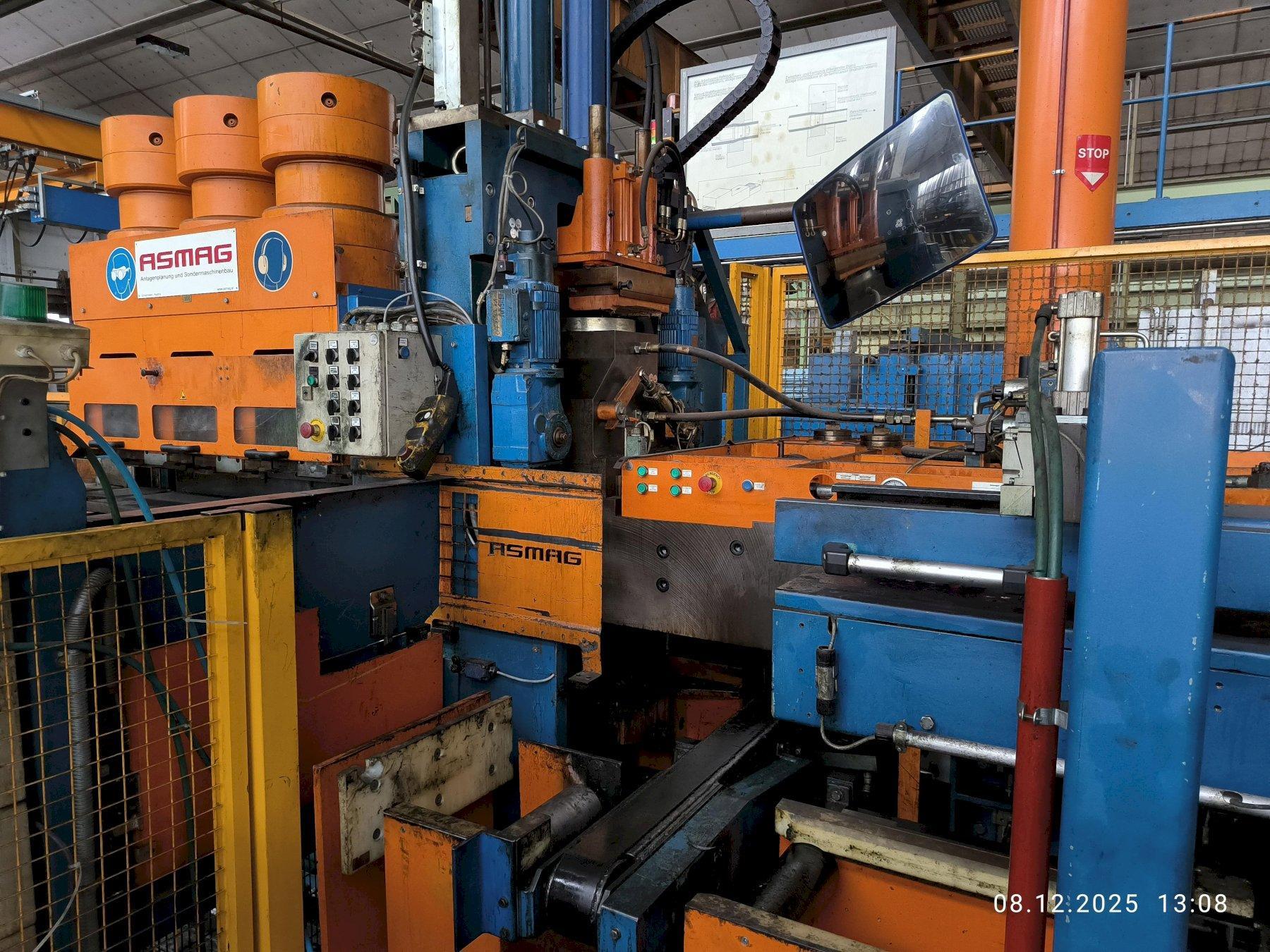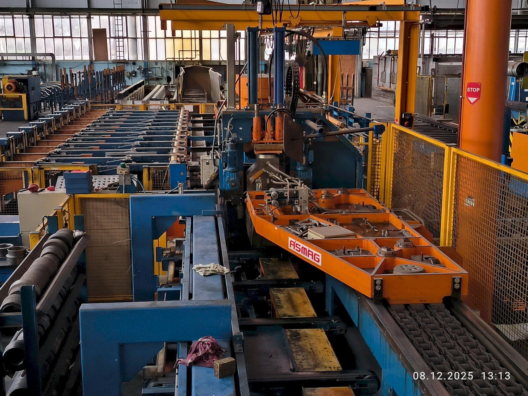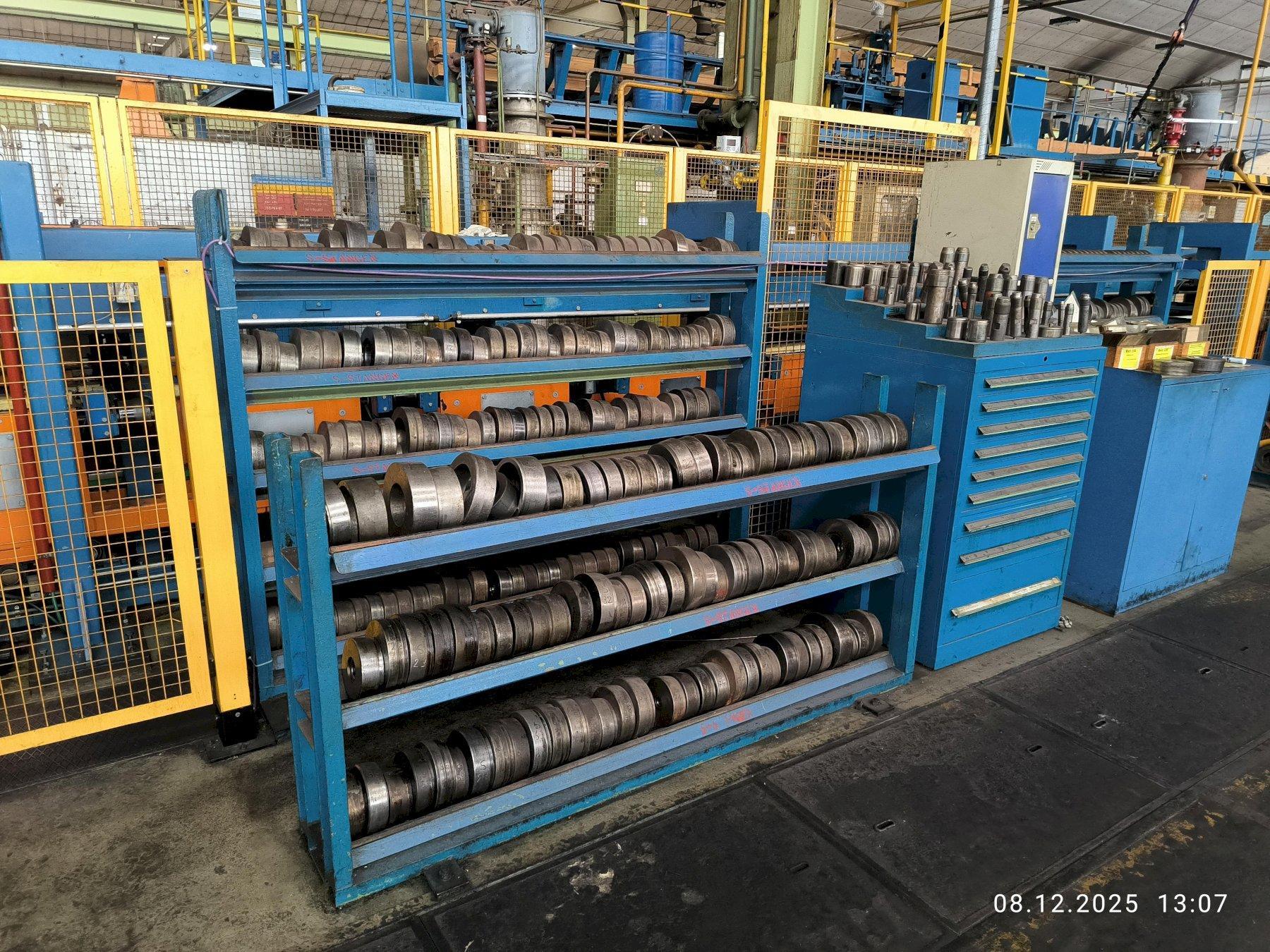 SPECIFICATIONS: MANUFACTURER - ASMAG TYPE - DRAWING AND STRETCHING MACHINE ZRM500 PROFILE FORMS - ROUND, SQUARE, HEXAGONAL, OCTAGONAL, SOLID BARS / HOLLOW PROFILES / FLAT BARS TENSILE FORCE - 500KN (600KN AT START FOR 2-3 SECONDS) DRAWING SPEED RANGE - (CONTINUOUSLY ADJUSTABLE) 5-60 METERS PER MINUTE MAX. DRAWING SPEED AT 300KN TENSILE FORCE - 38 METERS PER MINUTE PUSHER - MAX. PUSHING FORCE: 900KN / MAX. PUSHING SPEED: 80MM PER SECOND / PUSHER TRAVEL: 10 - 300mm / CLAMPING FORCE: 3 x MAX. 1400KN PULLER RETURN SPEED - 120 METERS PER MINUTE PULLER DRIVE - 360KW DC MOTOR MAX. DRAW CARRIAGE SPEED - 120 METERS PER MINUTE DRAWING LENGTH - 4000mm - 16000mm CUTTING WITH AND WITHOUT TRIMMING AND WITH AND WITHOUT END CUTTING (REMAINING PIECE EJECTION) MATERIAL SPECIFICATIONS: PLC-SYSTEM: 2 x HIGH PERFORMANCE CIRCULAR SAWS: