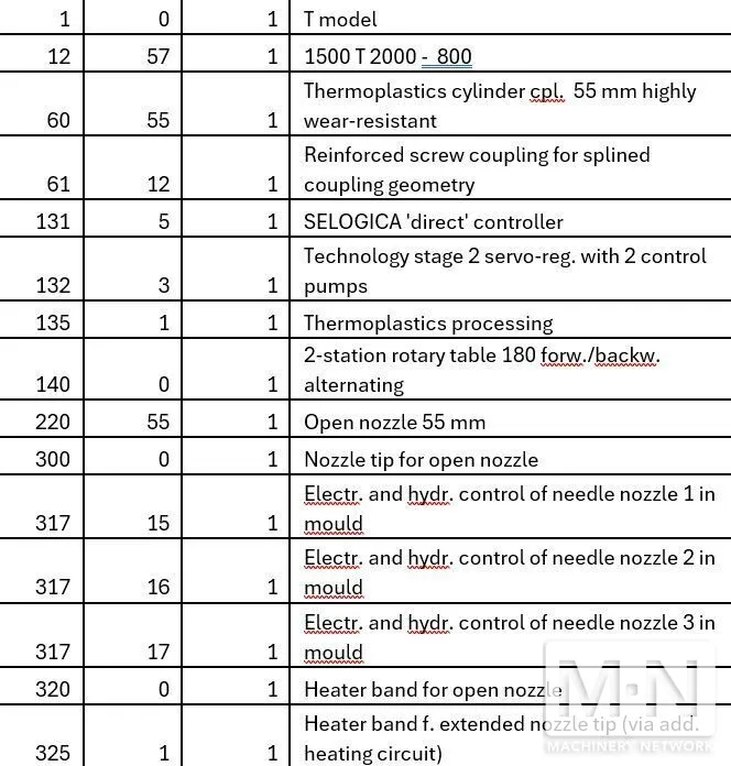OverviewDescription220 TON 16 OZ ARBURG MODEL 1500T-2000-800 VERTICAL CLAMP AND INJECTION MACHINE MFG 2015 SELOGICA DIRECT CONTROL