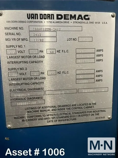 OverviewDescription300 TON 25 OZ VAN DORN MODEL 300HT-1220 INJECTION MOLDING MACHINE MFG 2002 P3000 CONTROL |