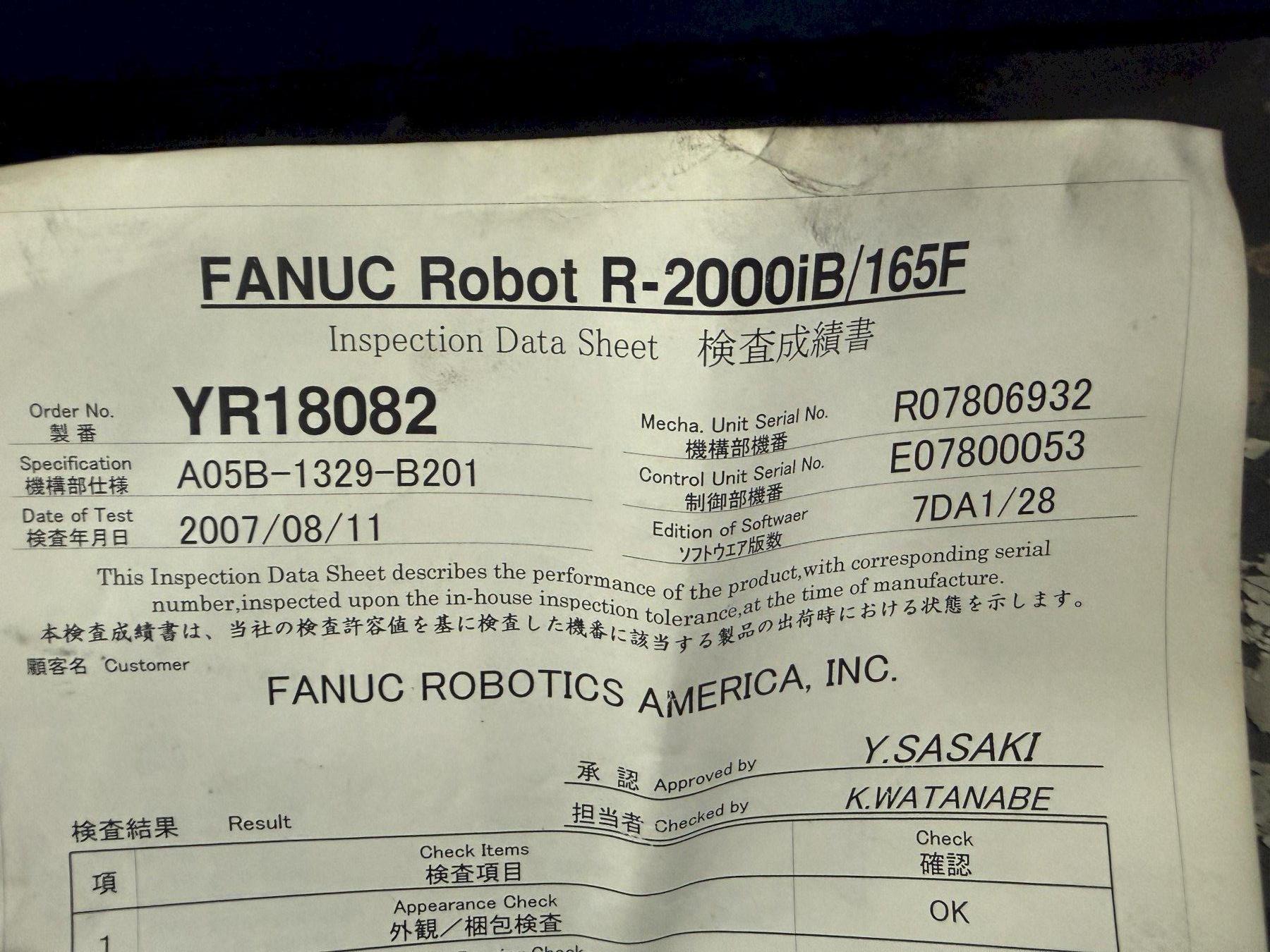 FANUC MODEL R-2000iB / 165F FOUNDRY PRO ROBOT: YOBOR #24771