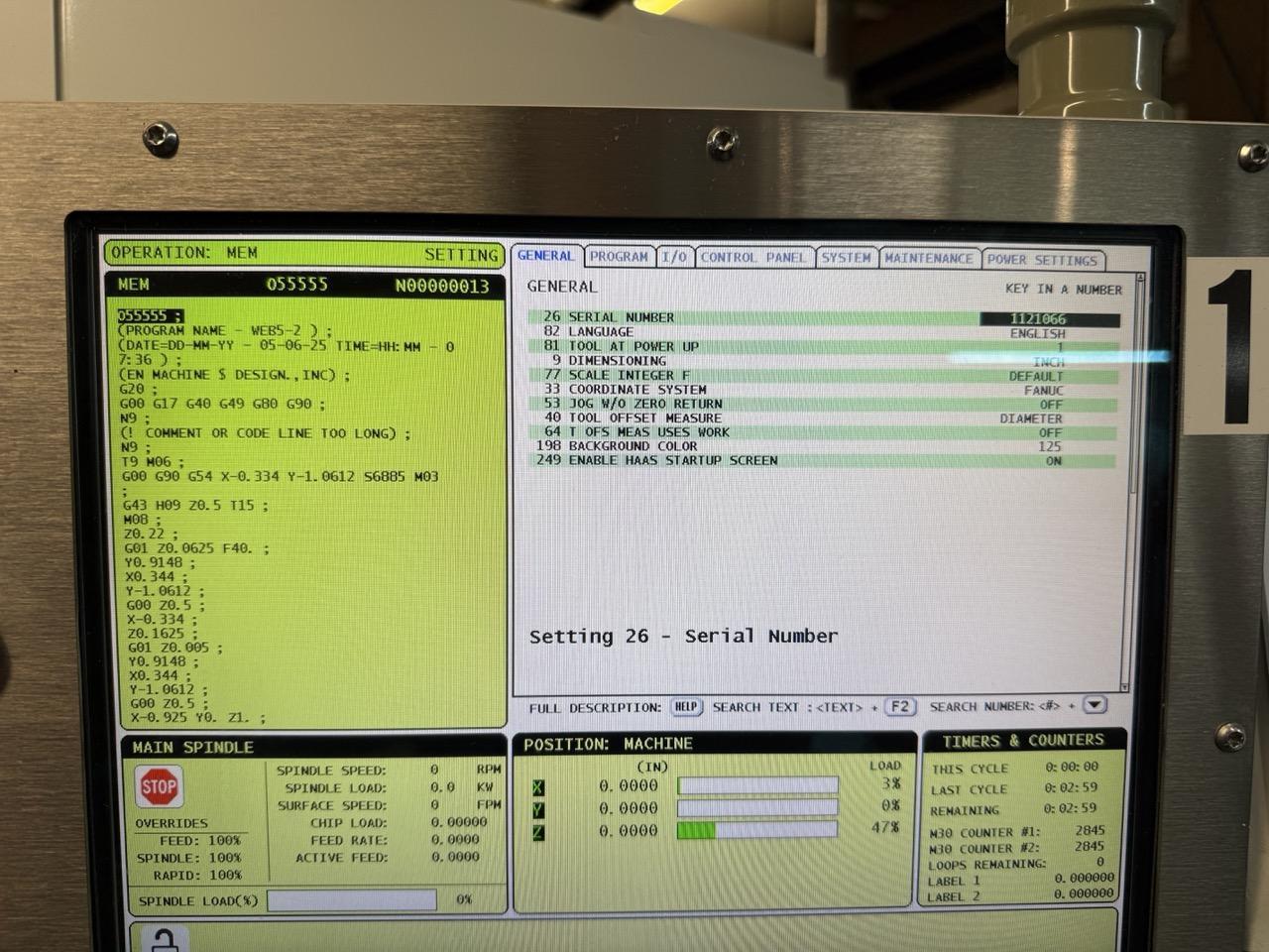 All specifications are assumed to be correct but must be confirmed by the purchasing entity.,Equipped With: All specifications are assumed to be correct but must be confirmed by the purchasing entity.,Haas CNC Control Chip Auger Rigid Tapping 24+1 Side Mount Tool Changer Programmable Coolant All specifications are assumed to be correct but must be confirmed by the purchasing entity. |