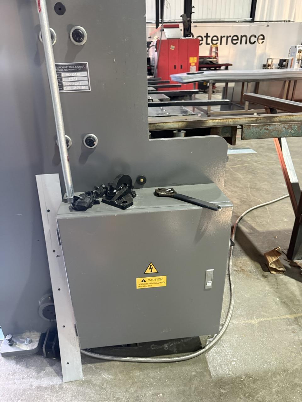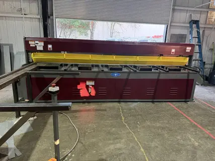All specifications are assumed to be correct but must be confirmed by the purchasing entity.,Mild steel 12’ x 14 Ga. All specifications are assumed to be correct but must be confirmed by the purchasing entity.,Stainless steel 12’ x 18 Ga. All specifications are assumed to be correct but must be confirmed by the purchasing entity.,soft aluminum 12’ x 10 Ga. All specifications are assumed to be correct but must be confirmed by the purchasing entity.,min. thickness 22Ga All specifications are assumed to be correct but must be confirmed by the purchasing entity.,Blade length 12′ Strokes per minute 10-12 Throat depth 18″ Worktable height 34 1/2″ Front support arm 24″ Back gauge All specifications are assumed to be correct but must be confirmed by the purchasing entity.,24″ manual back gauge All specifications are assumed to be correct but must be confirmed by the purchasing entity.,Blade rake angle 2 degree Oil tank cap. 26 Gal. Main Motor All specifications are assumed to be correct but must be confirmed by the purchasing entity.,10 HP, 220V/35A – 440V/20A All specifications are assumed to be correct but must be confirmed by the purchasing entity.,Machine weight 9150 LBS Machine dimensions 195″x44″x66″ All specifications are assumed to be correct but must be confirmed by the purchasing entity. |