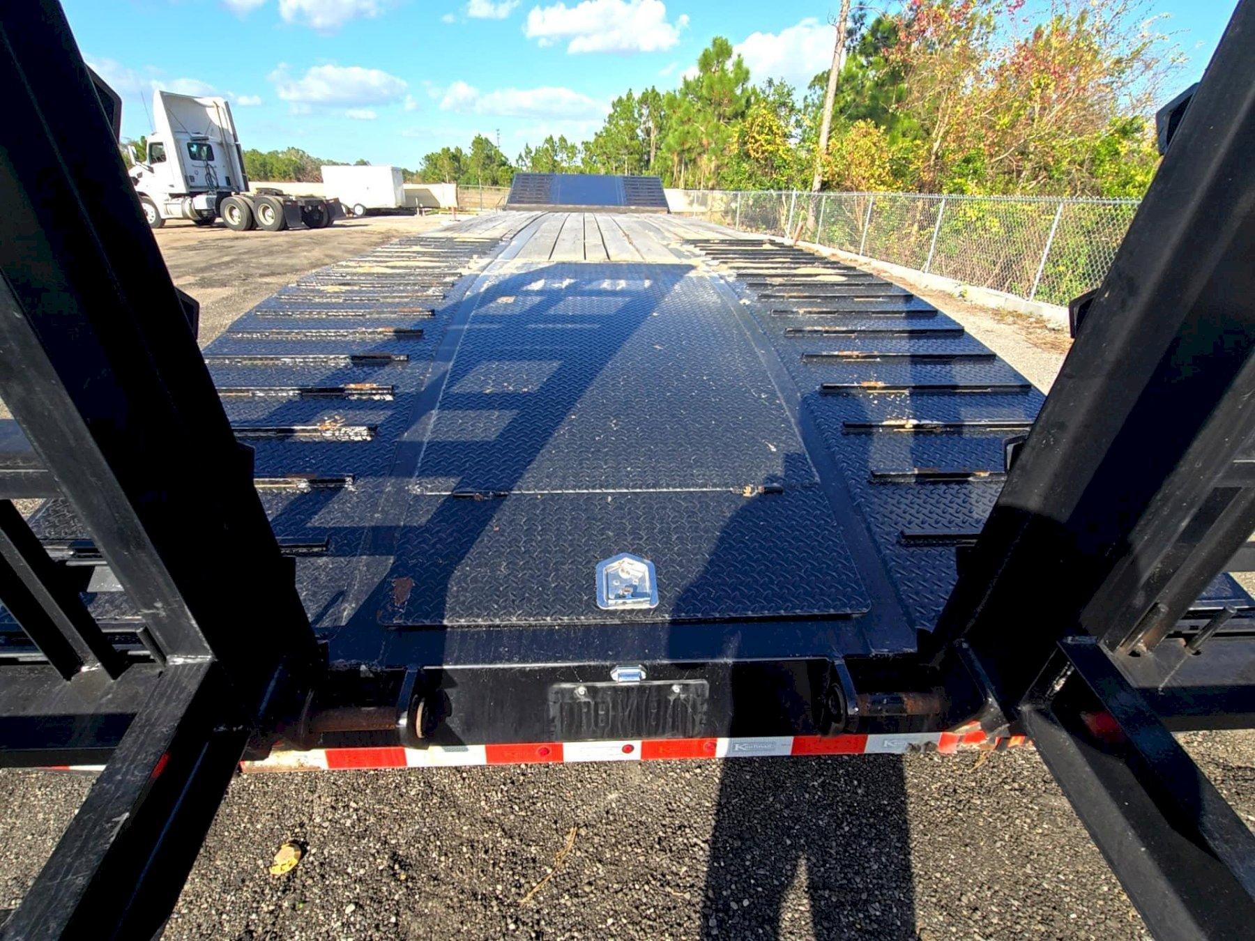All specifications are assumed to be correct but must be confirmed by the purchasing entity.,Dimensions Overall Deck Length: 48 ft Deck Width: 102 in (typical) Deck Type: Flat, heavy-duty steel frame All specifications are assumed to be correct but must be confirmed by the purchasing entity.,Capacity & Ratings GVWR: ~70,000 lbs (35-Ton Class) Payload Capacity: Approx. 55,000–58,000 lbs (depending on tare) All specifications are assumed to be correct but must be confirmed by the purchasing entity.,Axles & Suspension Axles: Tandem Suspension: Spring Ride Brakes: Air Brakes ABS: Yes All specifications are assumed to be correct but must be confirmed by the purchasing entity.,Running Gear Tires: 22.5″ radial truck tires Wheels: Steel All specifications are assumed to be correct but must be confirmed by the purchasing entity.,Coupling Kingpin: 2″ Landing Gear: Heavy-duty dual-speed All specifications are assumed to be correct but must be confirmed by the purchasing entity. |