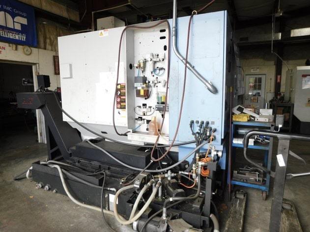 All specifications are assumed to be correct but must be confirmed by the purchasing entity.,Rapid Feedrates X / Y 42 m/min (approx. 1,653 IPM) Z 36 m/min (approx. 1,417 IPM) All specifications are assumed to be correct but must be confirmed by the purchasing entity.,Spindle Max Spindle Speed 15,000 RPM Max Spindle Power ~37 kW (~50 hp) Max Torque ~214 Nm (158 ft-lb) Taper / Tool Interface BT-40 / ISO #40 All specifications are assumed to be correct but must be confirmed by the purchasing entity.,Table/Work Envelope Table Size (L × W) 1,300 × 570 mm (51.2″ × 22.4″) Max Workpiece Weight ~1,000 kg (2,205 lb) Table to Spindle Nose ~610 mm All specifications are assumed to be correct but must be confirmed by the purchasing entity.,Machine FootPrint Length ~3,080 mm (121.3″) Width ~2,560 mm (100.8″) Height ~2,890 mm (113.8″) Weight ~7,500 kg (16,535 lb) All specifications are assumed to be correct but must be confirmed by the purchasing entity.,Turbo LNS HB Barfeeder Tubo Chip Blaster All specifications are assumed to be correct but must be confirmed by the purchasing entity. |