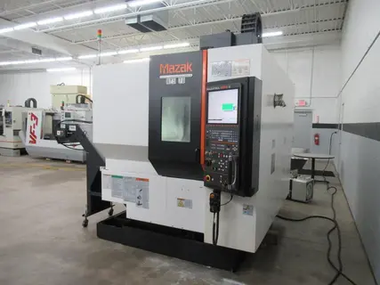Control: Mazatrol Matrix 2 CNC Control Machine Travels X/Y/Z: 21.65" x 15.75" x 20.08" Distance Spindle Nose to Platter: 4.53" - 24.61" 5-Axis Table Style: Integrated Trunnion 5th Axis Swivel (Tilt) Range: B Axis +95/ -45 Degrees Table Size: 15.75" Diameter Rapid Traverse X/Y/Z: 945 IPM Spindle Speeds: 12,000 RPM Max Spindle Speed Spindle Taper: CT40 Tool Changer Capacity: 30 Station Automatic Tool Changer Spindle Drive: 25 HP C-Axis Rotation: .0001 Degree Full C-Axis Max Tool Diameter: 3.15" / 4.92" w Adjacent Pockets Empty Max Table Load: 441 LBS. Description: Used Mazak VCU 400A-5X CNC Vertical Machining Center for sale at Machinesused.com. This high-performance 5-axis machining center delivers precision, versatility, and productivity for complex part machining. Ideal for aerospace, medical, and precision engineering applications, the Mazak VCU 400A-5X features advanced Mazatrol control, rigid construction, and high-speed spindle performance. Buy, sell, or consign quality used Mazak CNC machines with Machinesused.com — your trusted source for used CNC equipment and online auctions. Equipped With: Mazatrol Matrix 2 CNC Control, 12000 RPM Spindle, Integrated 2-Axis Trunnion Table, CT 40 Taper, 12K RPM, 30 Station Tool Changer, Coolant System, Jorgensen Chip Conveyor, Remote Jog Handwheel, Renishaw Tool and Parts Probing System, USB Ports, LNS Mist Collector on Stand NOTE: Height dimension given is with head down for shipping Electrics: 208 Volt, 3 Phase |