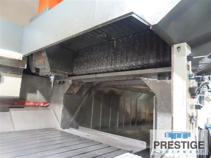 X-Axis, Table Travel 165.35" Y-Axis, Spindle Head Travel 90.55" Z-Axis, Vertical Travel 36.22" Distance Between Columns 94.48" Spindle Nose to Table 48" Table Size 80.70" x 165.35" Table Load Capacity 28,600 lbs Spindle Taper CAT 50 Spindle Speeds (2-Gear Ranges) 50-6000 RPM Spindle Motor 35 HP Rapid Traverse X Axis 393 IPM Rapid Traverse Y/Z-Axes 472 IPM Cutting Feed Rate 275 IPM Estimated Machine Weight 84,581 Lbs Equipped With: Fanuc 18iMB CNC Control 40 Station Automatic Tool Changer Thru Spindle Coolant (500 PSI) Box Way Construction Spindle Chiller Chip Conveyor NOTE: Inspect In Plant Under Power |