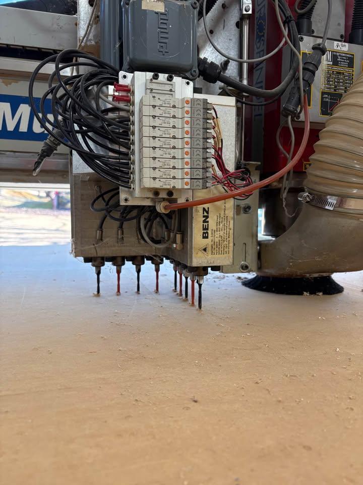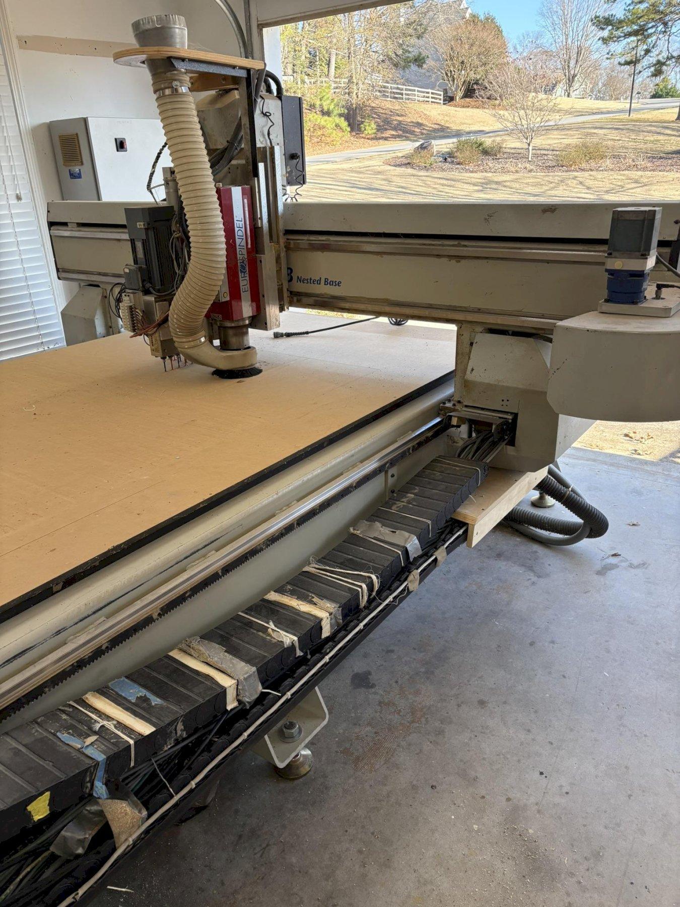 Multicam 6’ x 12’ CNC Router with ATC and Vacuum Table – Reasonable Offers Considered Cumming, GA This is an older Multicam MG NB (Nested Base) CNC router with automatic tool changer and TurboVac vacuum system. It is an industrial, production-level machine that will pay for itself on your first job — not new, not perfect, but solid for a shop that knows CNC equipment. Originally purchased from a local high-end production cabinet shop. ⸻ Key Specs: • Model: Multicam MG NB (Nested Base) ATC • Serial: MG205NB42949 • Table: 6’ x 12’ Vacuum Table • Power: 220V / 97 Amps / 3-Phase • Spindle: 11kW EuroSpindle • VFD: Yaskawa GPD 506 / P5 • Tooling: Automatic Tool Changer • Drilling: 8-Position Benz Drill Bank • Vacuum: Multicam TurboVac, 3-Phase ⸻ Condition / Transparency • Older machine with normal wear consistent with production use • Not currently under power (no 3-phase available at residential location) • Was operational prior to disconnection • Stored indoors • Previous owner indicated the Slo-Syn motor for the ATC needs to be repaired/replaced