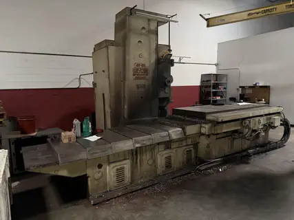MODEL..........................: 4K-96 SPINDLE DIAMETER...............: 4" SPINDLE TRAVEL.................: 20" TRAVELS: X AXIS.........................: 96" Y AXIS.........................: 60" TABLE RETRACTION...............: 20" TABLE SIZE.....................: 96" X 40" SPINDLE TAPER..................: 50 SPINDLE SPEEDS.................: (16) 24-1450 RPM SPINDLE BAR FEEDS..............: (8) .002 - .024 IPR SPINDLE RAPID TRAVERSE.........: 95 IPM MILLING FEED RATES.............: (16) .5 - 36 IPM MILING RAPID TRAVERSE..........: 50 IPM, 150 IPM DIGITAL READ OUT...............: YES POWER DRAW BAR.................: YES HP.............................: 20 |