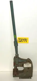 MODEL: 91 SERIAL NUMBER: 4445 GENERAL SPECIFICATIONS Lever Operated Capacity: 10 Ton Maximum Thickness: 1/4" (Mild Steel, 3/8" Diameter Hole) Ram Stroke: 5/8" Shut Height: 3-1/8" Throat Depth: 5" Maximum Diameters: 2" thru 12 gauge mild steel 1-3/4" thru 1/8" mild steel 3/4" thru 3/16" mild steel 1/2" thru 1/4" mild steel EQUIPPED WITH Miscellaneous Punches and Dies Approximate Weight: 80 Lbs. F.O.B. Cincinnati, Ohio ALL SPECIFICATIONS SUBJECT TO VERIFICATION BY PURCHASER |