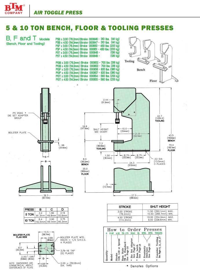 20 TON BTM MODEL #P20F TOG-L-LOC AIR TOGGLE SHEET METAL PRESS: YOBRO...