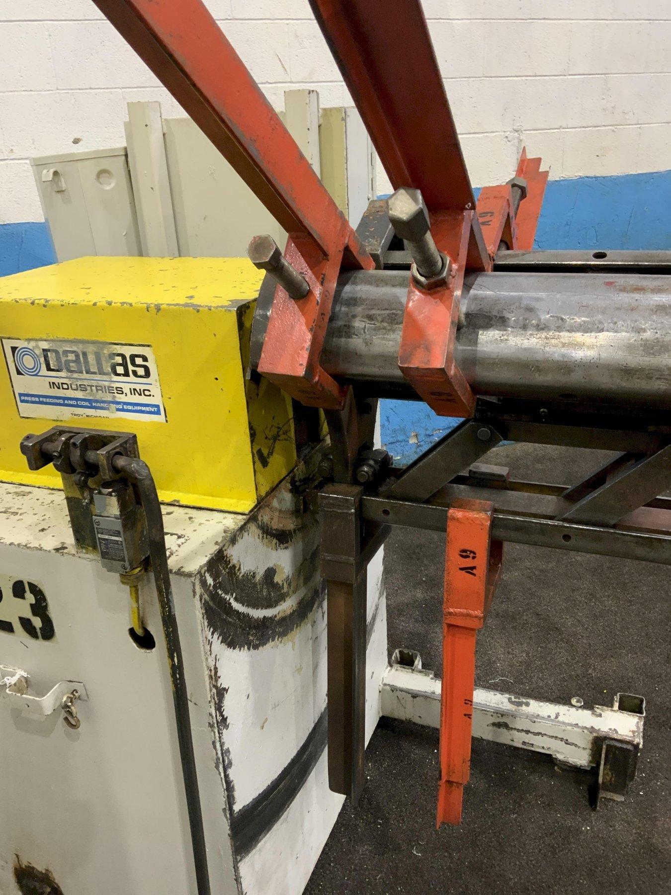 SERIAL ......................... 17688 MODEL .......................... DPR-818 CAPACITY ....................... 8000 LBS WIDTH .......................... 18" MAXIMUM OUTSIDE DIAMETER ............... 60" MAXIMUM INSIDE DIAMETER ................ 20" TO 24" MOTORIZED ...................... YES VARIABLE SPEED ................. 4 TO 12 RPM DANCER ARM ..................... YES EXPANSION ...................... HYDRAULIC KEEPERS ........................ 3 |