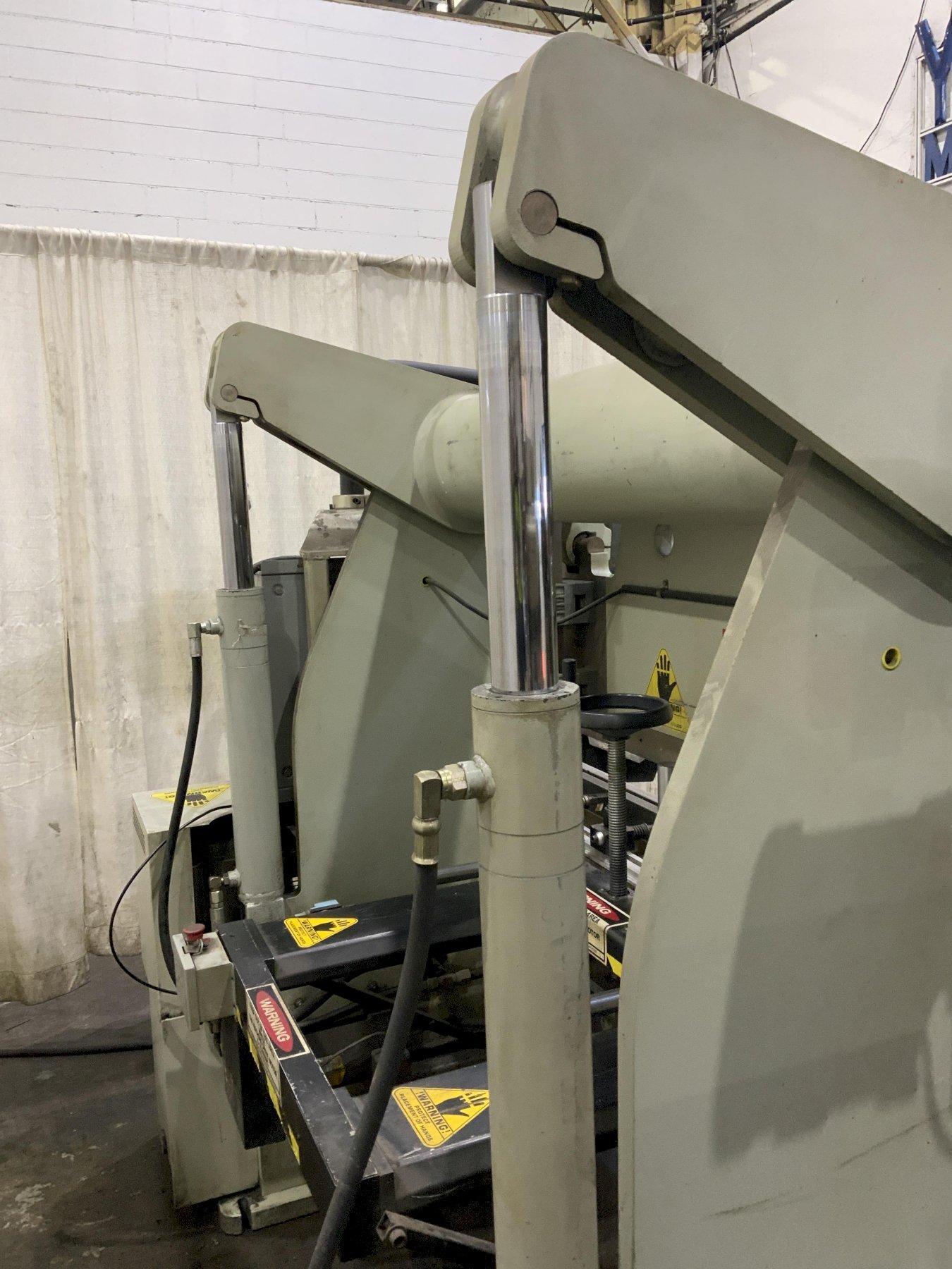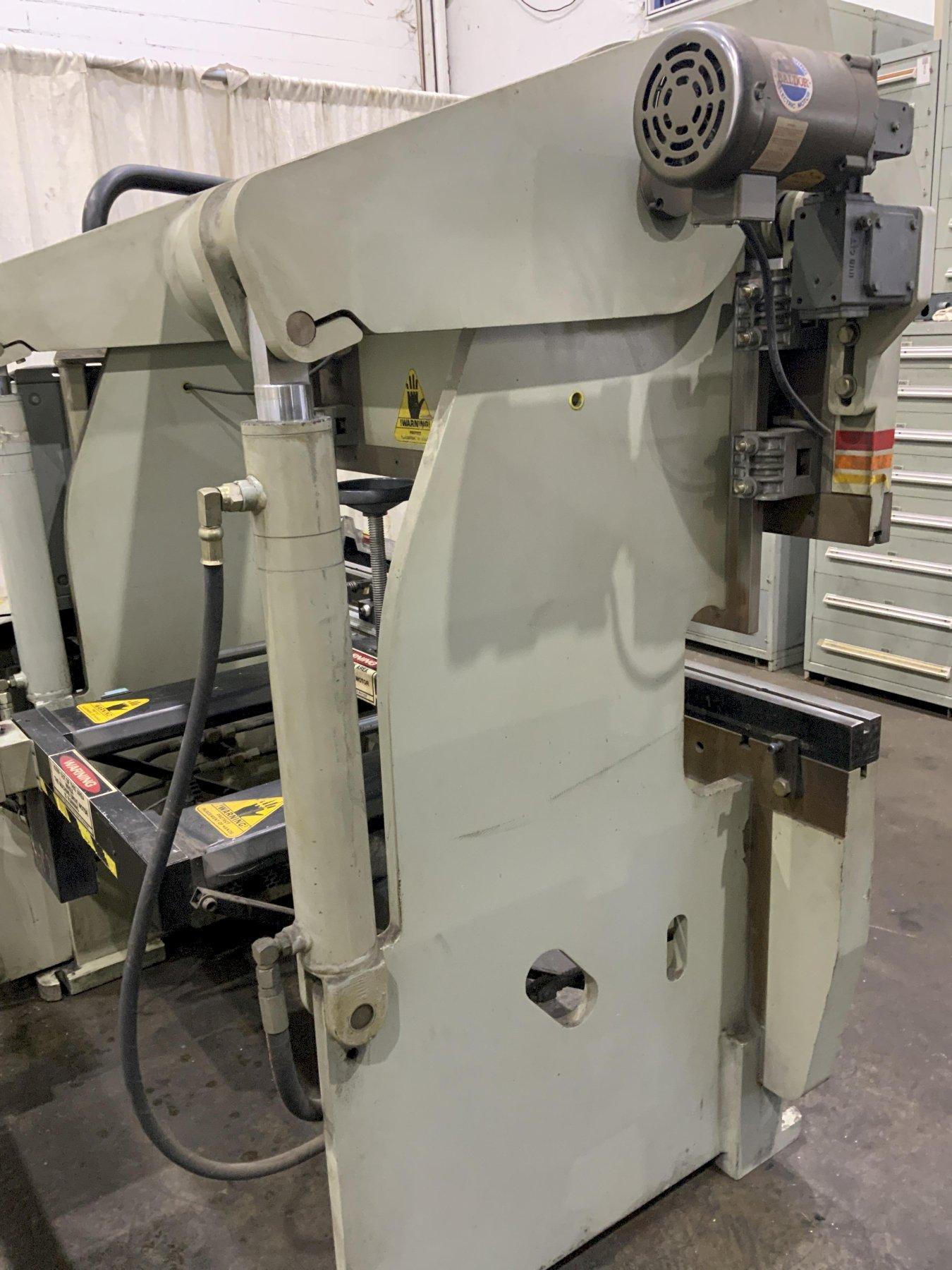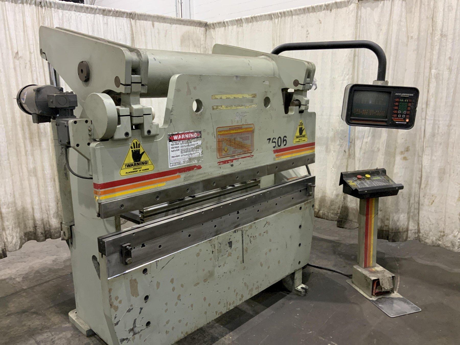 SERIAL ...................................... 3844 MODEL ....................................... 7608 YEAR ........................................ 8-1996 CAPACITY .................................... 60 TONS OVERALL LENGTH OF BED & RAM ................. 72 DISTANCE BETWEEN HOUSINGS ................... 52" STROKE OF RAM ............................... 8" OPEN HEIGHT ................................. 14" CLOSED HEIGHT ............................... 6" DEPTH OF THROAT ............................. 8" RAM SPEED FAST APPROACH ..................... 130 IPM RAM SPEED SLOW BEND ......................... 25 IPM RAM SPEED FAST RETURN ....................... 220 IPM 2 AXIS AP-2 CNC CONTROL ..................... YES MACHINED FOR ANGLES ......................... YES ELECTRIC FOOT PEDAL ......................... YES PEDESTAL PALM BUTTONS ....................... YES MOTOR ....................................... 10 HORSEPOWER |