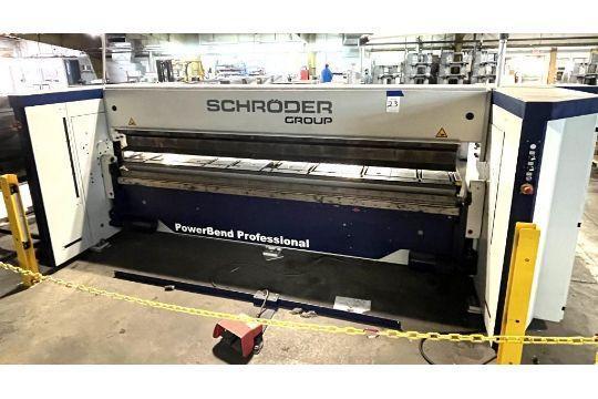 2016 Schröder PowerBend Professional 3200/3.0 | Up-and-Down Technology | Folding Machine Professional DescriptionHigh-Performance Motorized Folder with Up-and-Down Functionality For sale is a 2016 Schröder PowerBend Professional, a robust and precise industrial folding solution designed for high-speed production. This "3200/3.0" model offers a 127" (3240mm) working length and can handle up to 11-gauge (3.0mm) mild steel. Technical Specifications