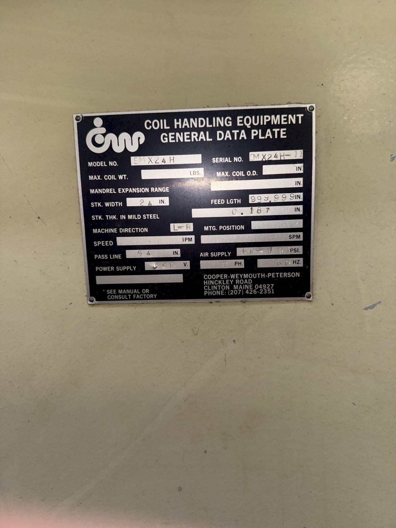 6,500 lbs x 24" Wide Cooper-Weymouth Peterson Conventional Coil Feed Line