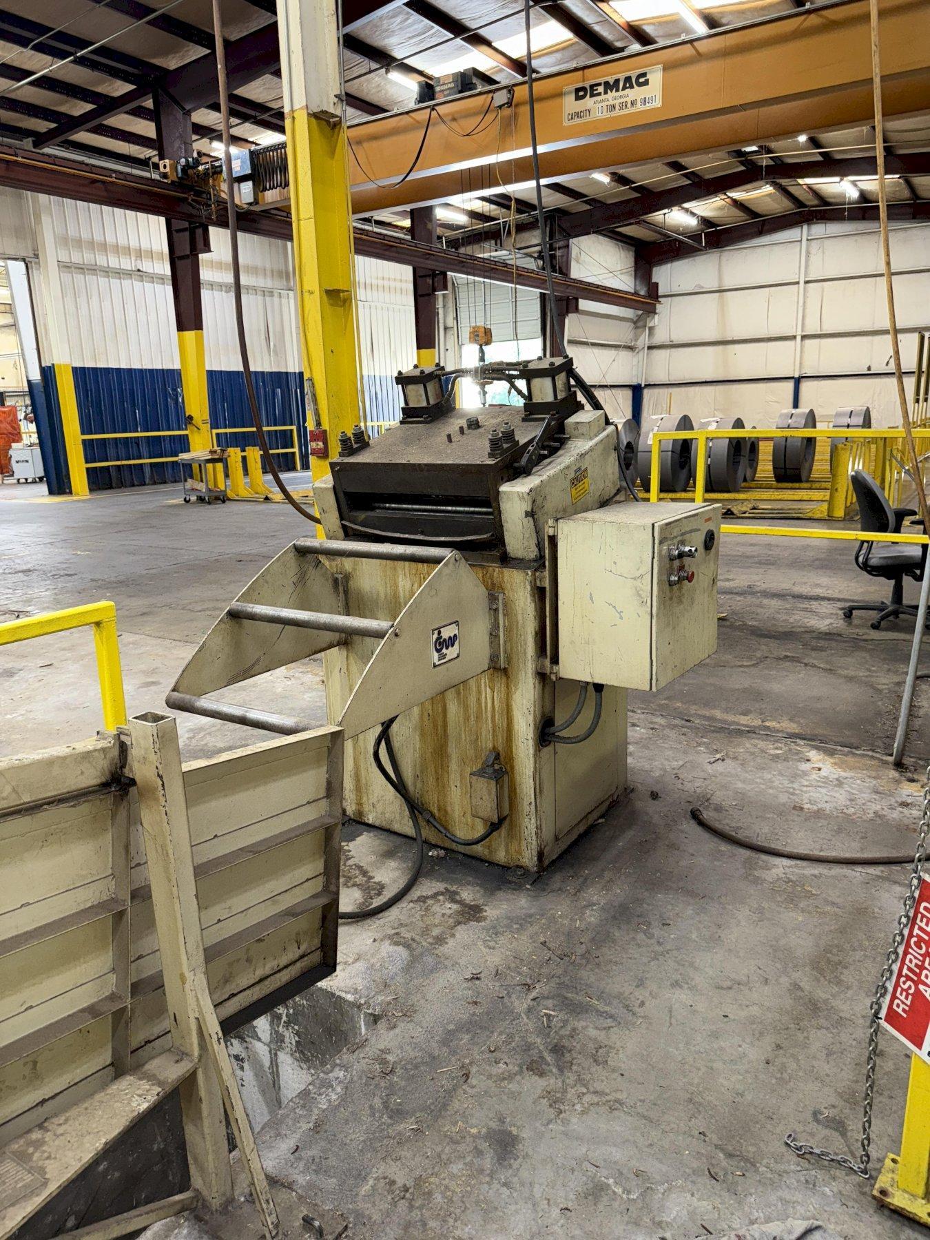 Feed Model SMX24H 24" Maximum Coil Width .187" Maximum Coil Thickness sn/ SMX24H-11 Straightener Model #SE24C sn/ 052557 24" Maximum Coil Width .187" Maximum Coil Thickness Left To Right Feed Direction 1200 IPM Line Speed 40-100 PSI Air Supply |