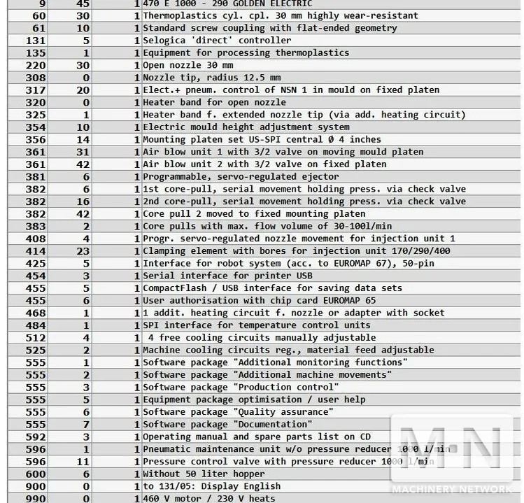 OverviewDescription110 TON 3.4 OZ ARBURG MODEL 470E-1000-290 ELECTRIC INJECTION MOLDING MACHINE MFG 2016 ONLY 1118 HOURS SELOGICA DIRECT CONTROL